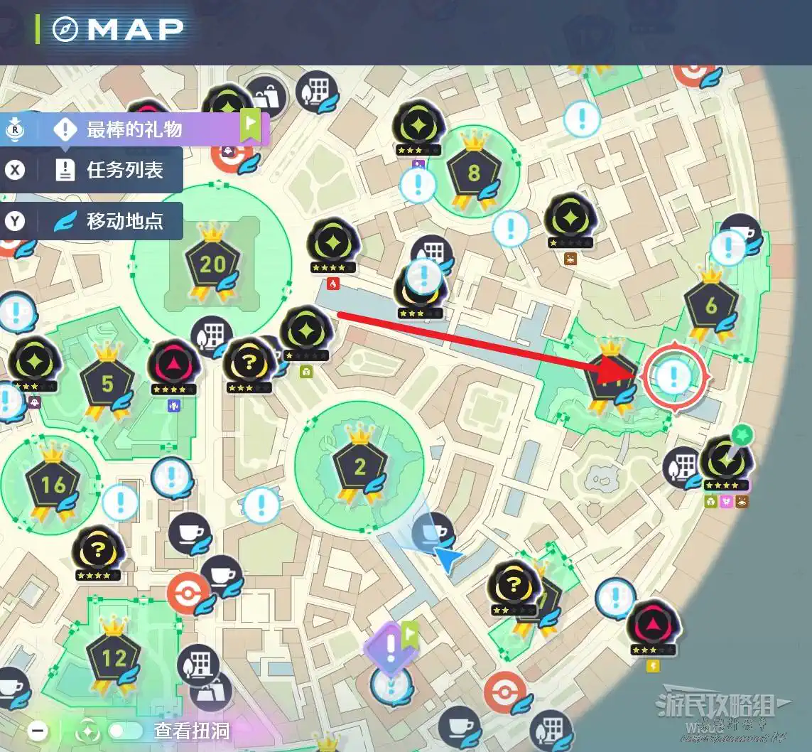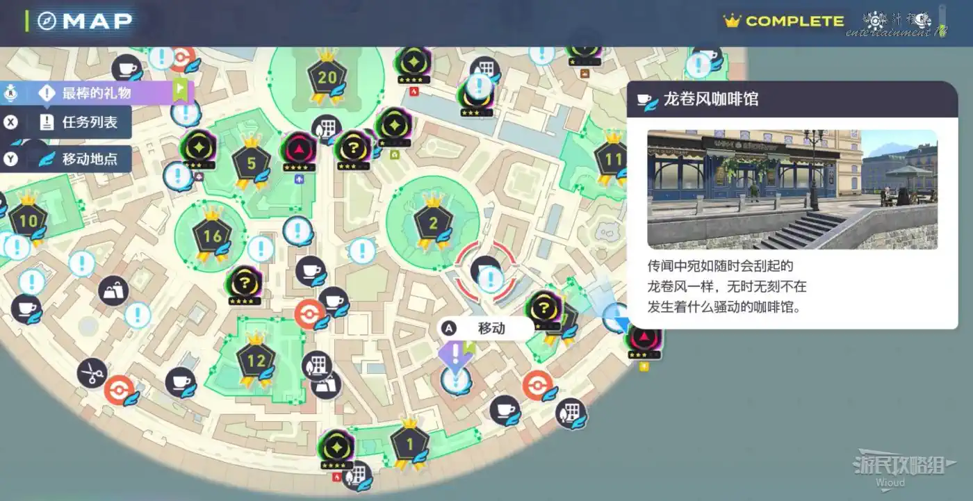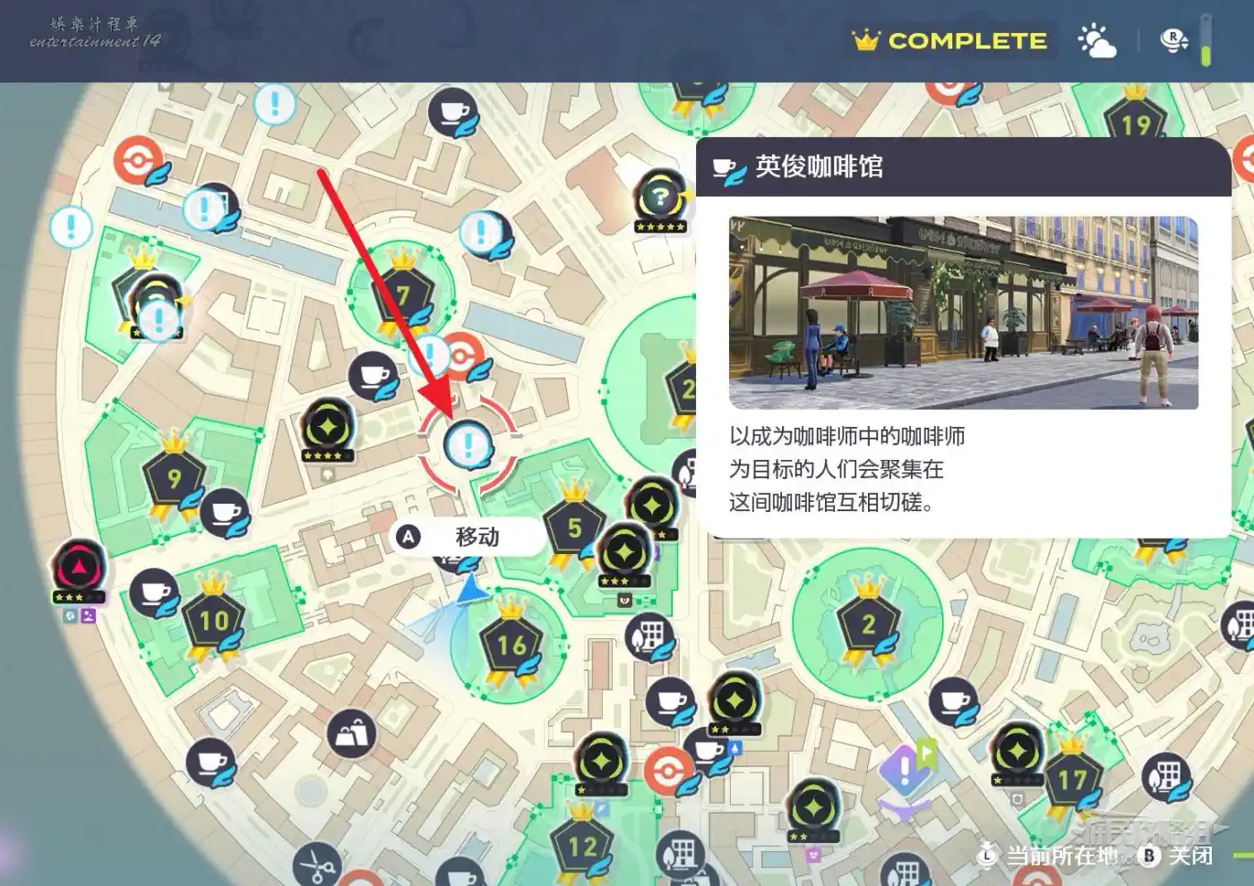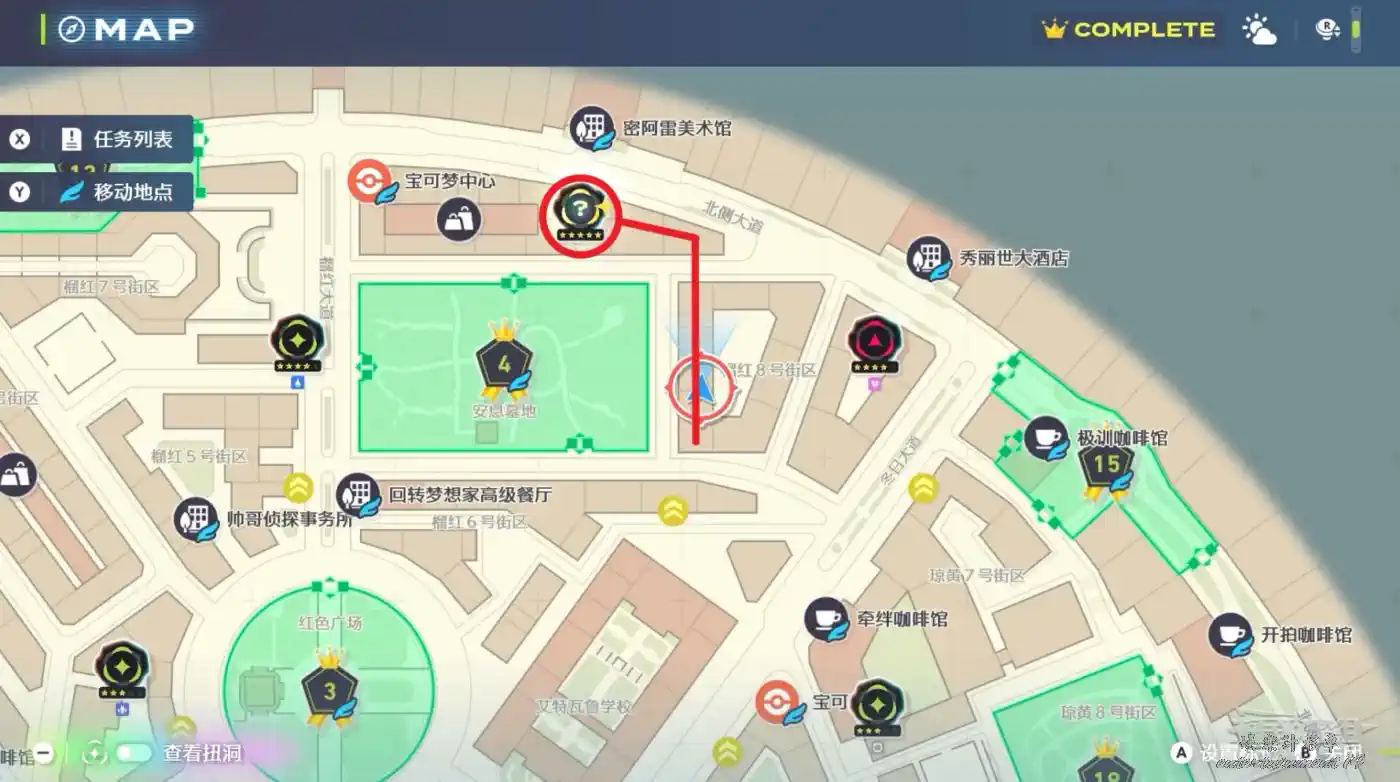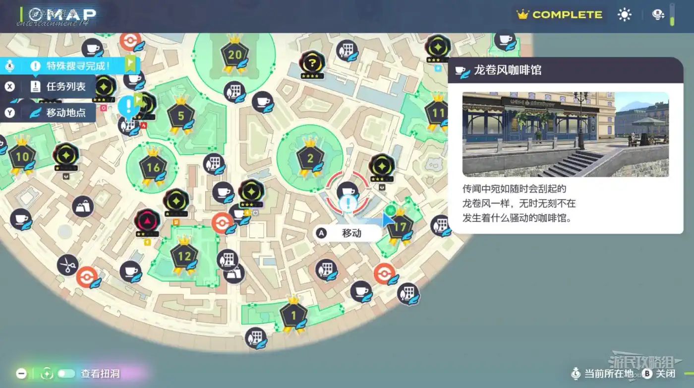 傳送到【龍捲風咖啡館】,咖啡館門口右側找到任務發佈人,和他對話然後開始一場寶可夢對戰。
