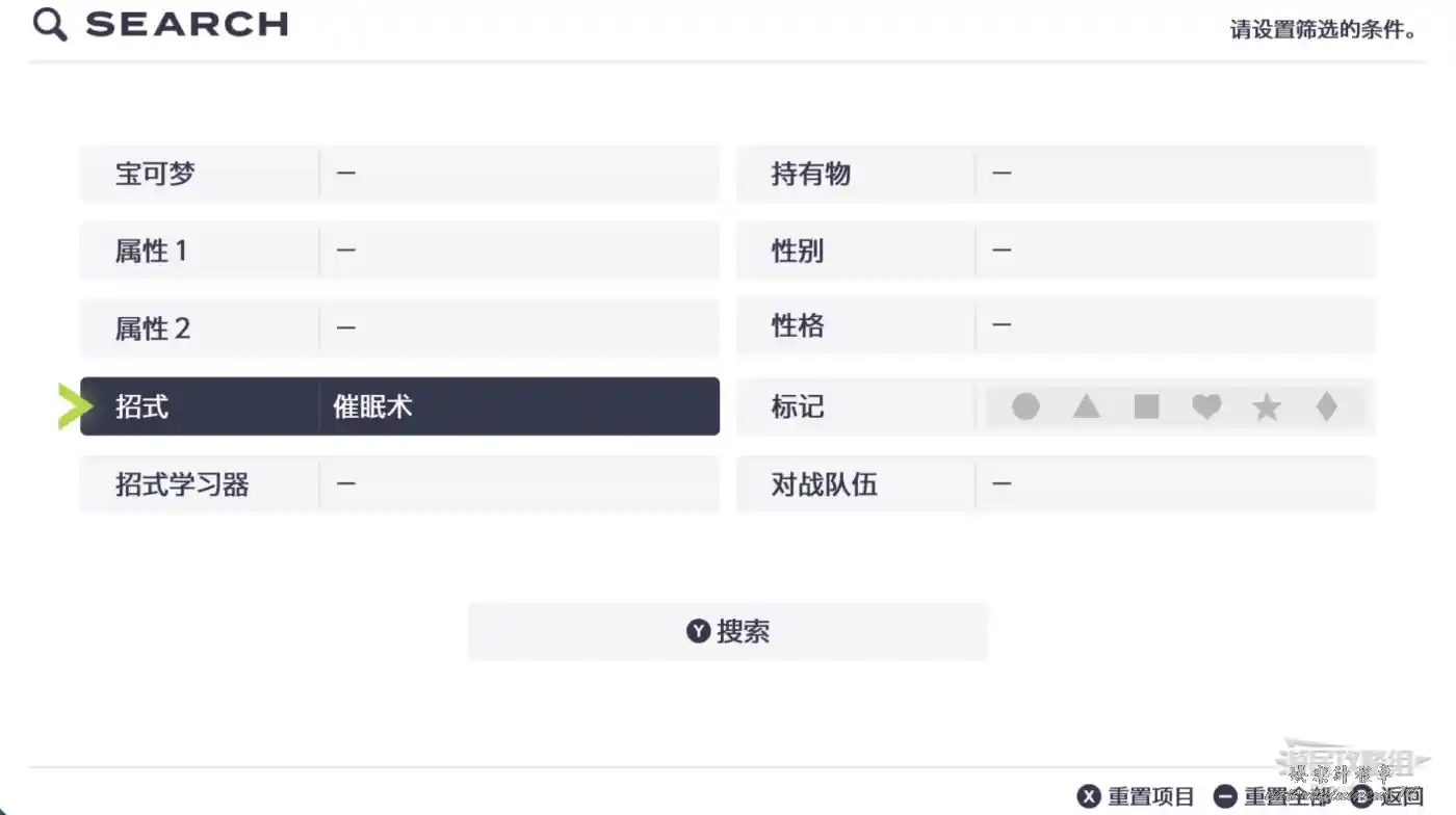 可以在盒子裡按下【-】直接搜索招式,來方便的找到擁有對應招式的寶可夢。