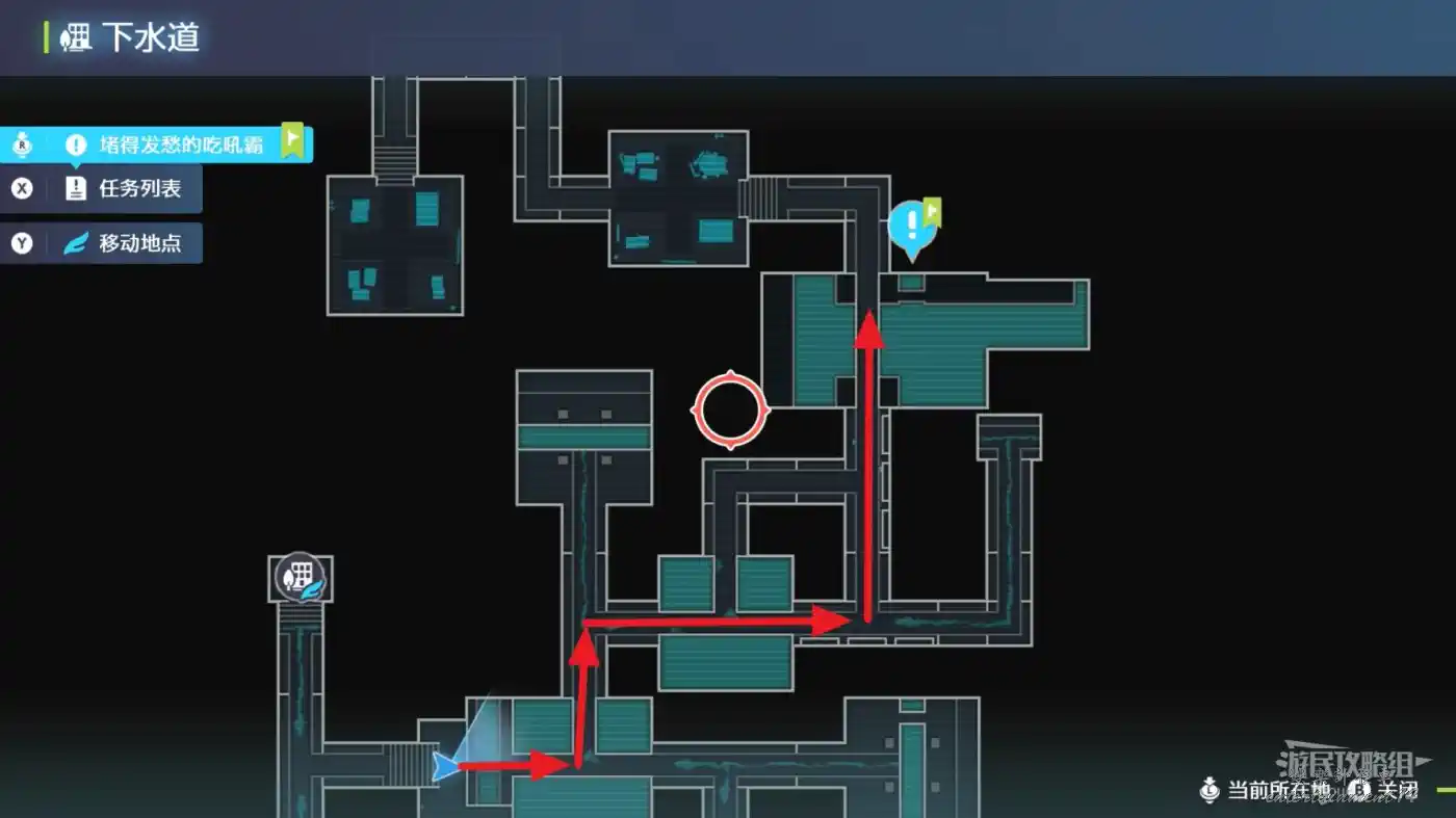 和任務發佈人對話後,沿著旁邊的隧道走,左側第一個過道左拐。