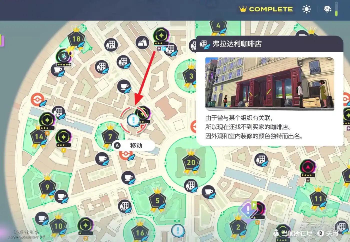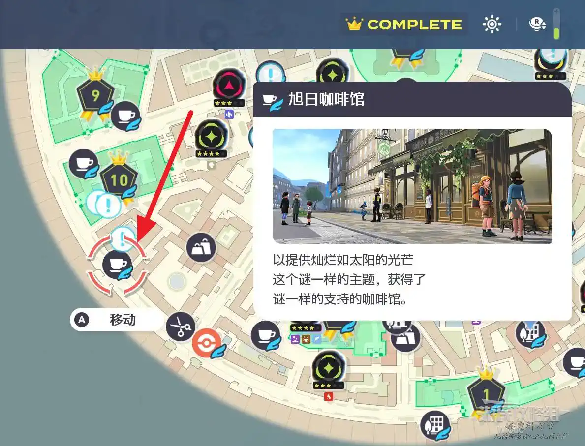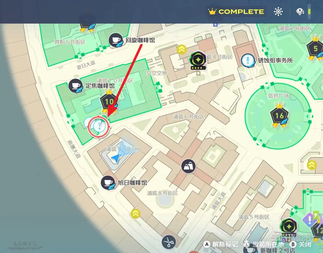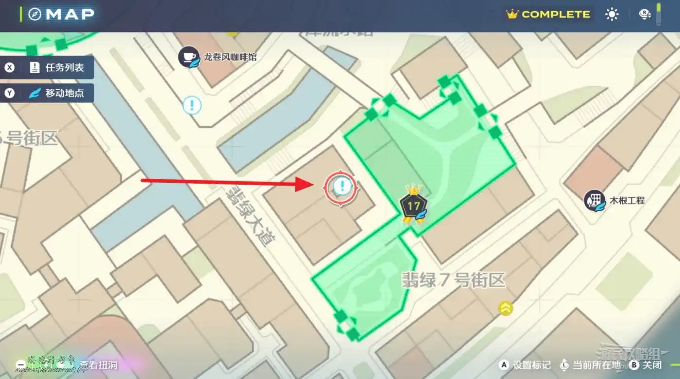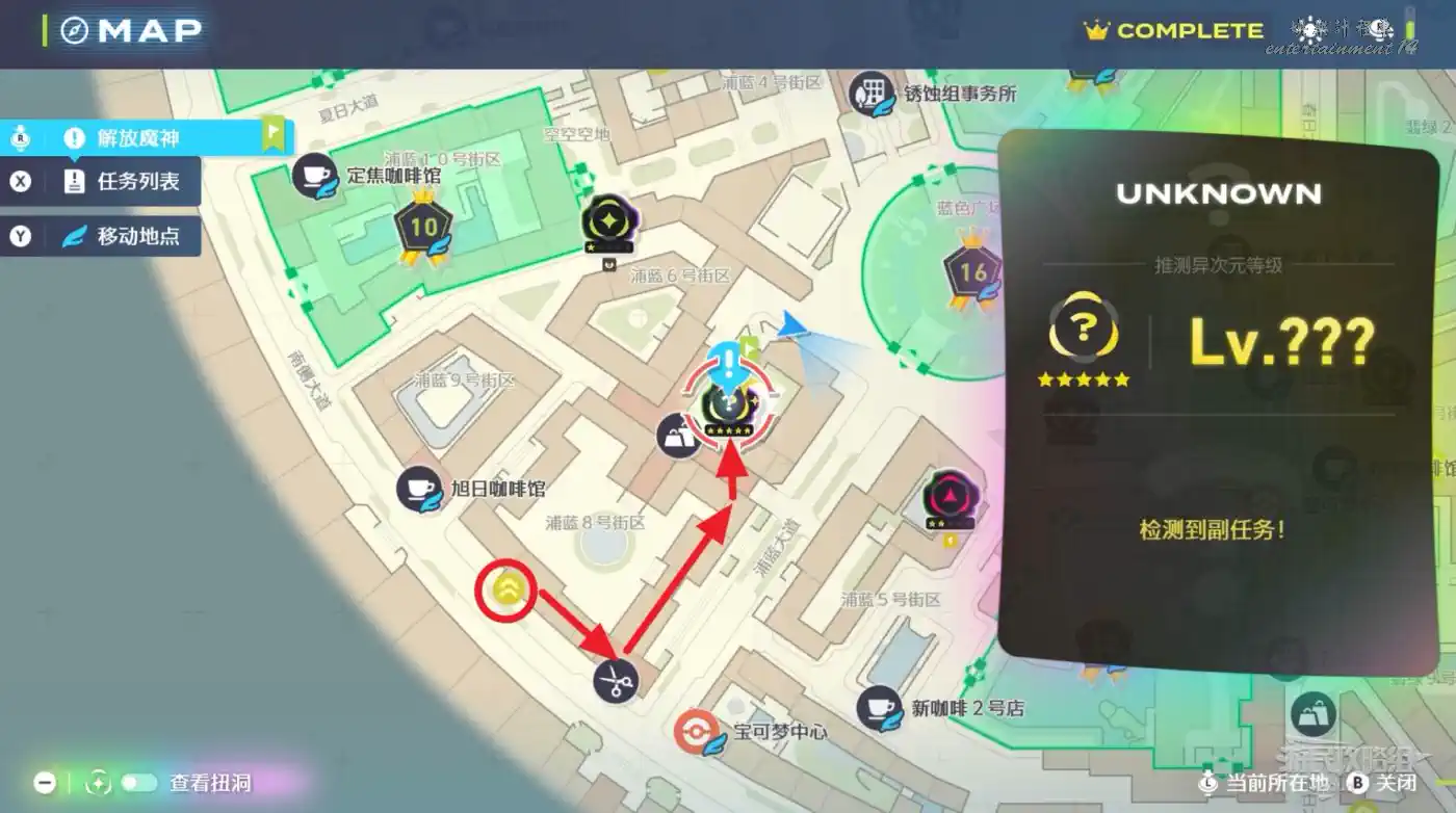 傳送到【旭日咖啡館】,沿著紅色路線移動到異次元入口處。