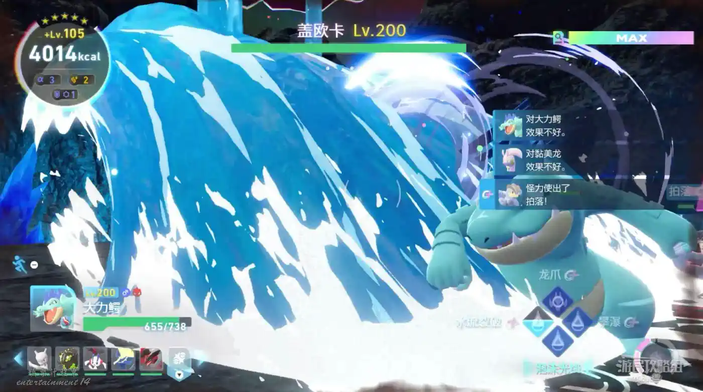 水試煉:使用【大力鱷】打贏三個草系寶可夢,這個是最簡單的,基本不用過多嘗試可以直接過。