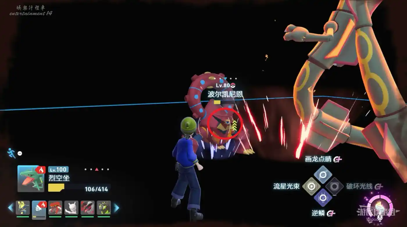 擊敗烈空坐可以直接捕捉它,回到旅館Z觸發劇情,安馨兒選擇先讓我們帶著烈空坐,等她長大再給她。