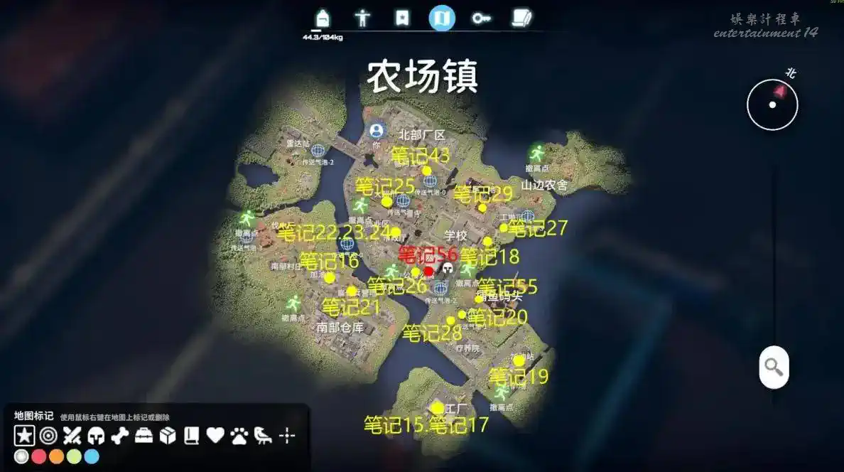 大地圖上的點位是大概的範圍,準確的位置請搜索查看具體筆記,角色的位置就是準確的位置;沒有標記在大地圖上的,直接搜索具體筆記即可。