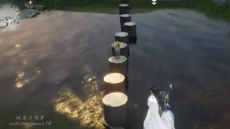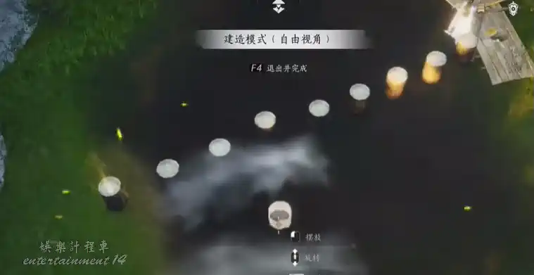 完成搭建後,直接退出建造模式,妙妙喵會自動嘗試過河。