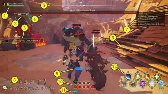 1.隊伍資訊:當前隊伍(及其生命值)會顯示在螢幕的左上角。如果你獨自遊戲,只會顯示你的角色資訊。