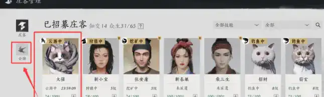 確定「莊客雲遊」後,少東家可通過莊客管理頁面查看莊客狀態,通過雲遊介面可以看到已獲得的雲遊圖志、以及雲遊劄記內容。其中將會記錄各位莊客所遇到的事情,非常有趣。