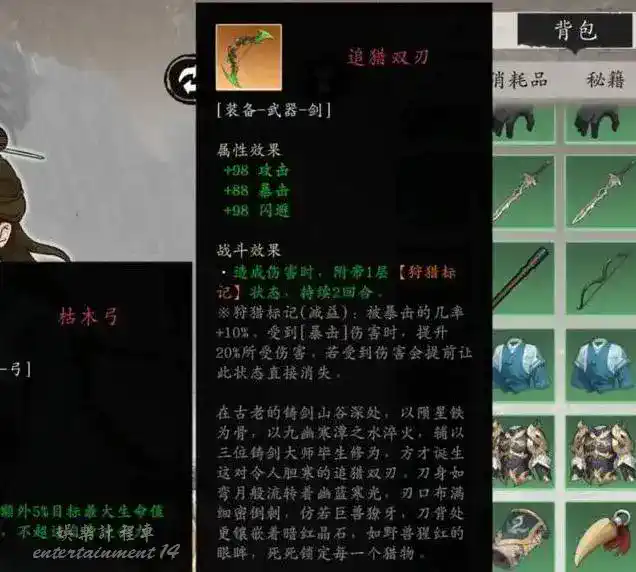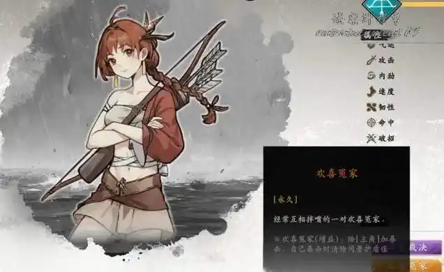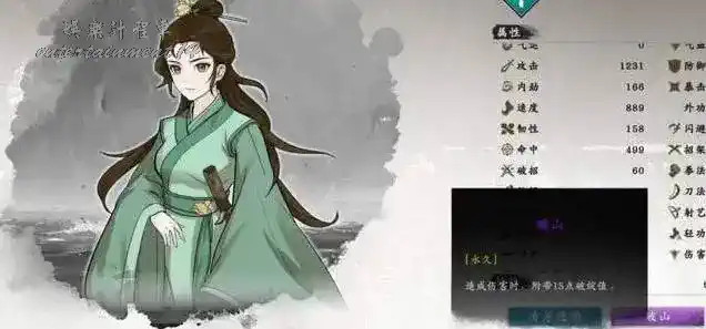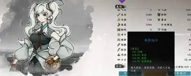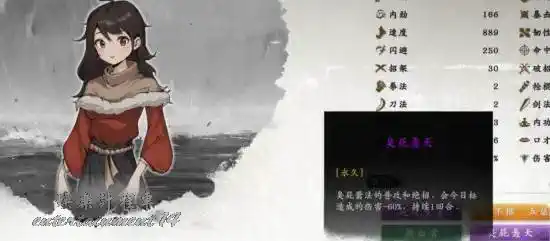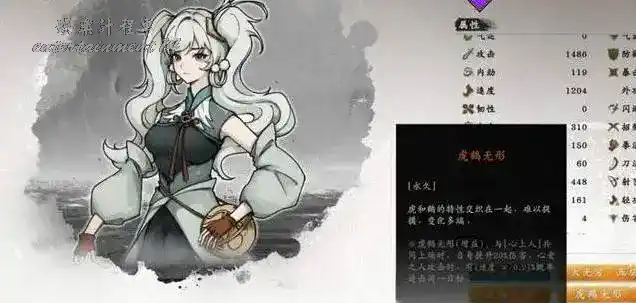 7好感一、選“輕柔”“接受”劍法30拿特性“鶴影隨行” 二、3紫色裝備選一 可以拿劍給小鹿 打毒傷也可以拿做飯回憶 配合蟒技能有奇效 劍法50