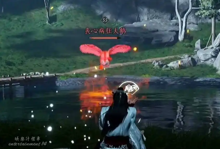 使用“太極”技能,將這隻狂暴的大鵝扔進附近的水中。