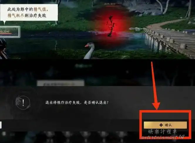 對病鵝使用“聽風辯位”技能開始治療,但在治療介面直接選擇退出。