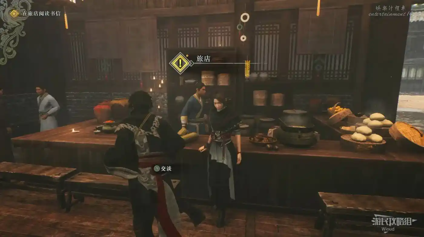 進入呂布篇,和旅店掌櫃對話閱讀貂蟬的書信,從旅店離開和貂蟬會面。