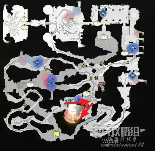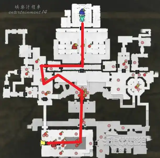 我們只需要繼續沿著黃色路線往右走,清理5、6這種人數較多的戰場,再移動到最右側清理上下兩側的所有敵人即可。