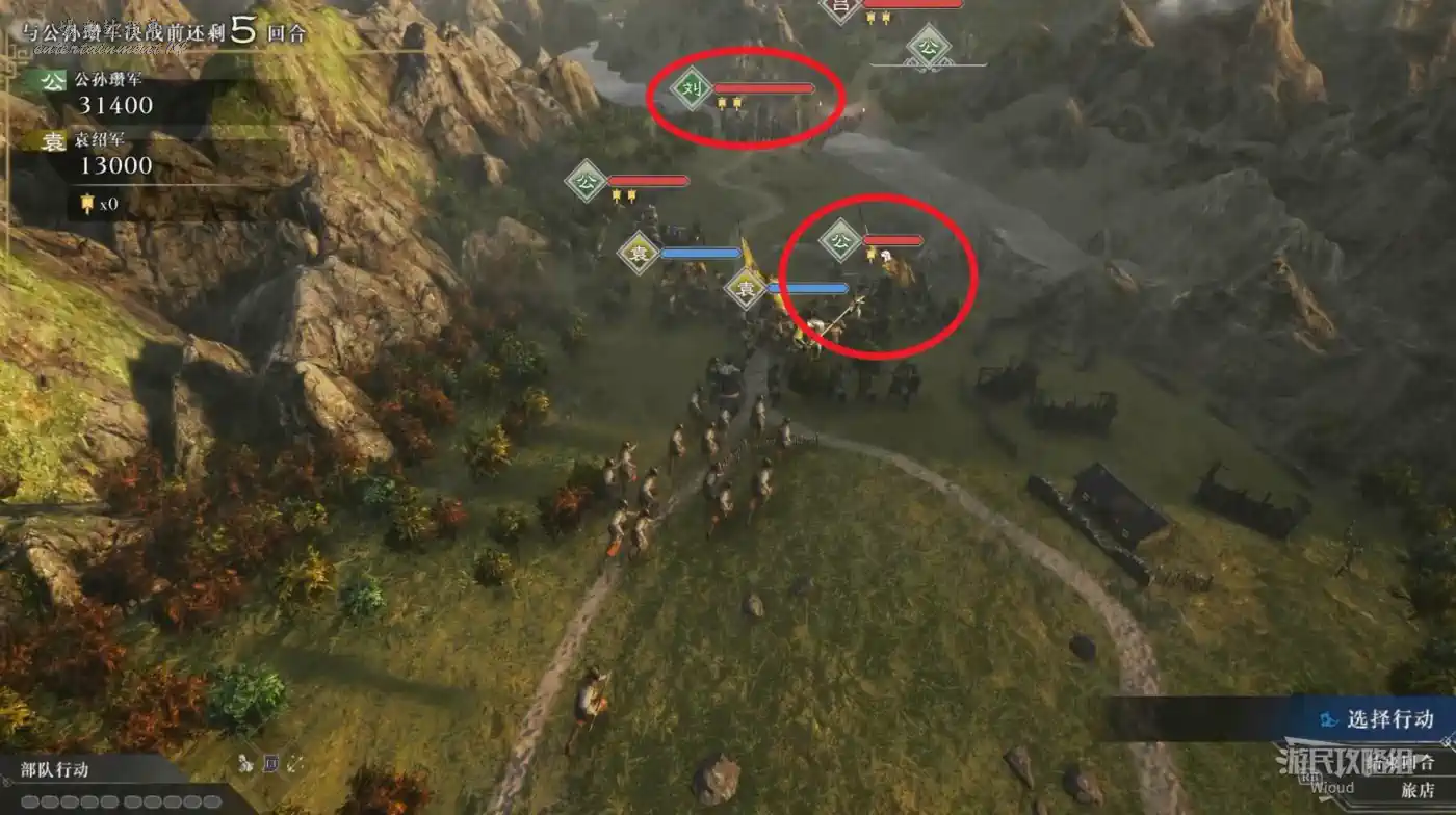 解決掉擋路的劉備兵團時,之前被二打一的敵人也已經被消滅,如果還有血就用部隊行動幹掉。