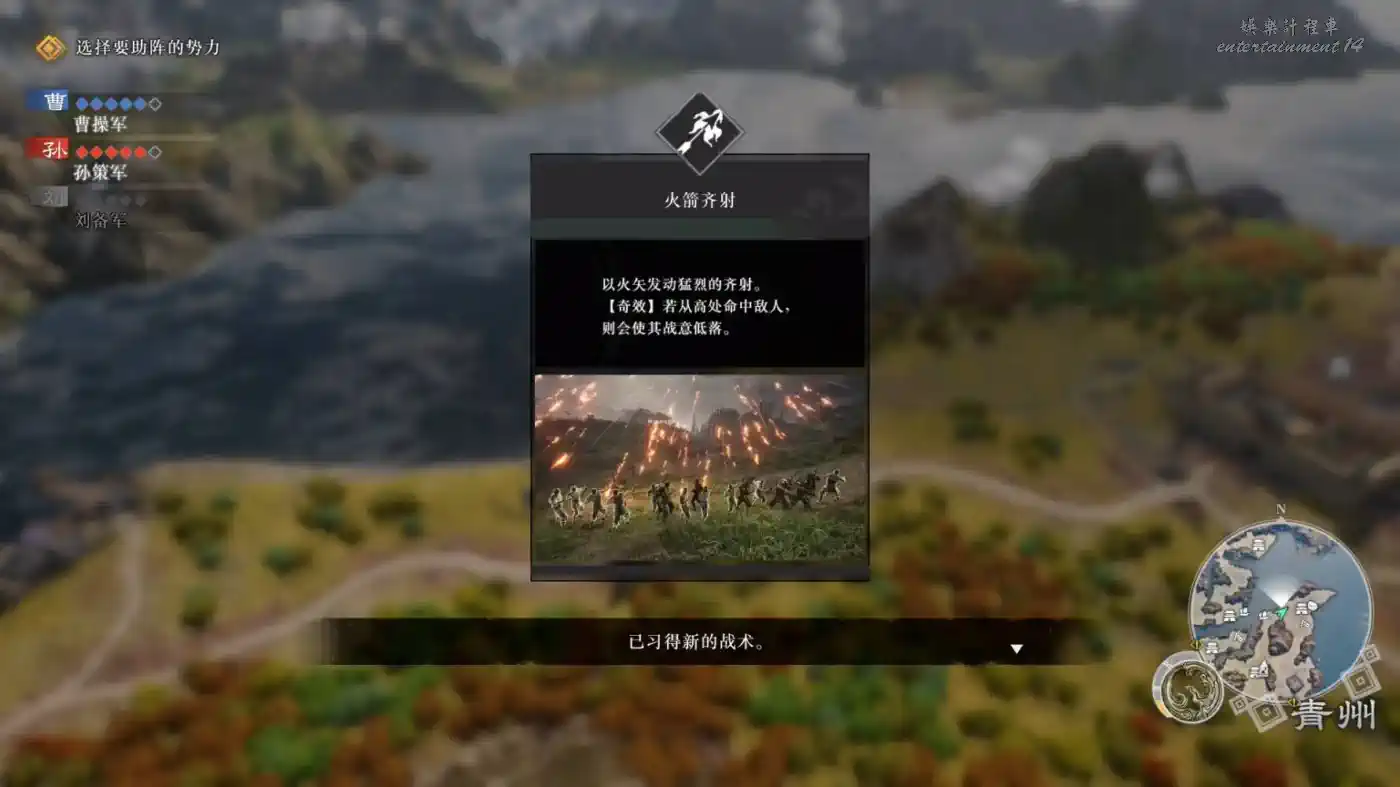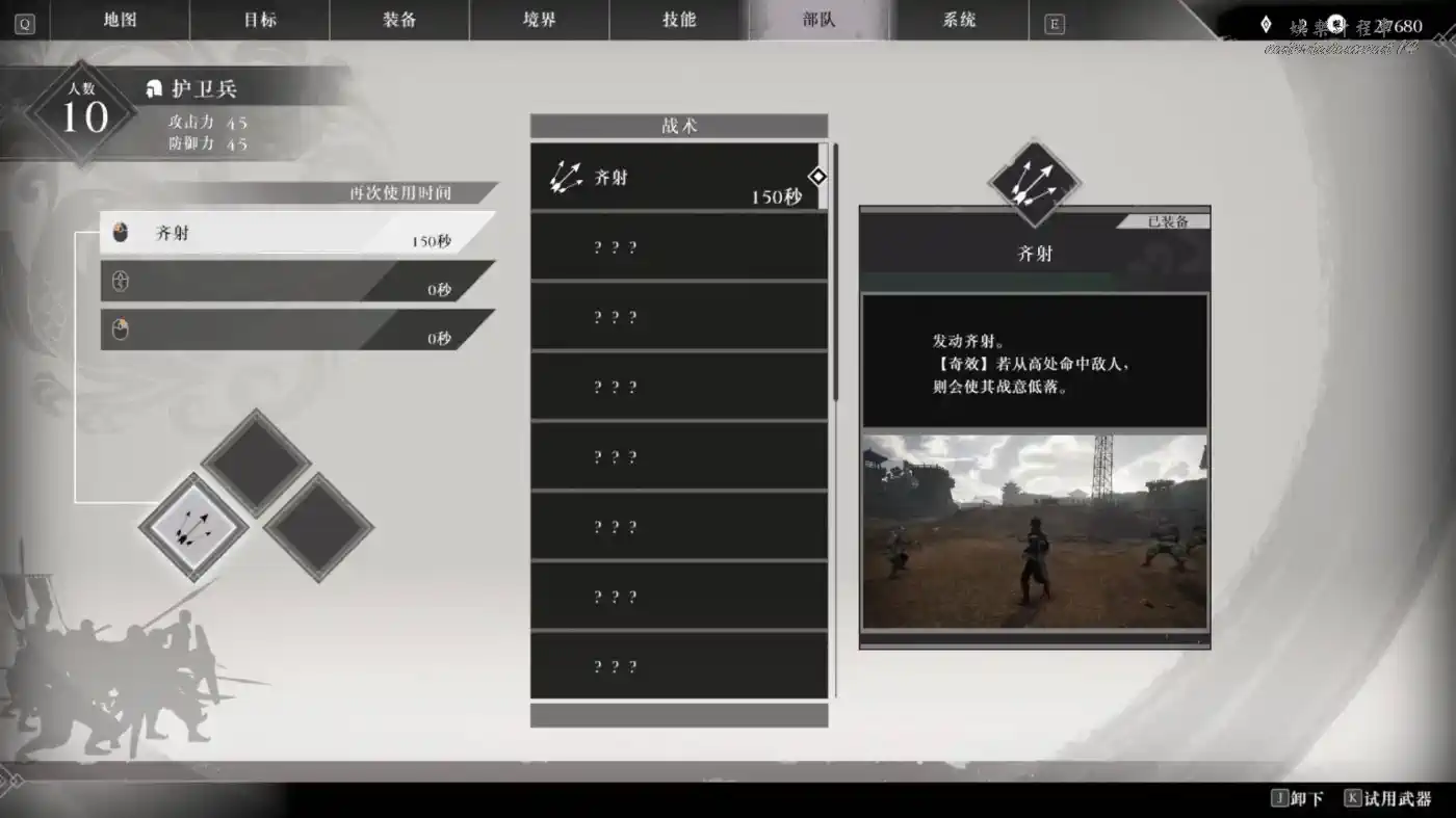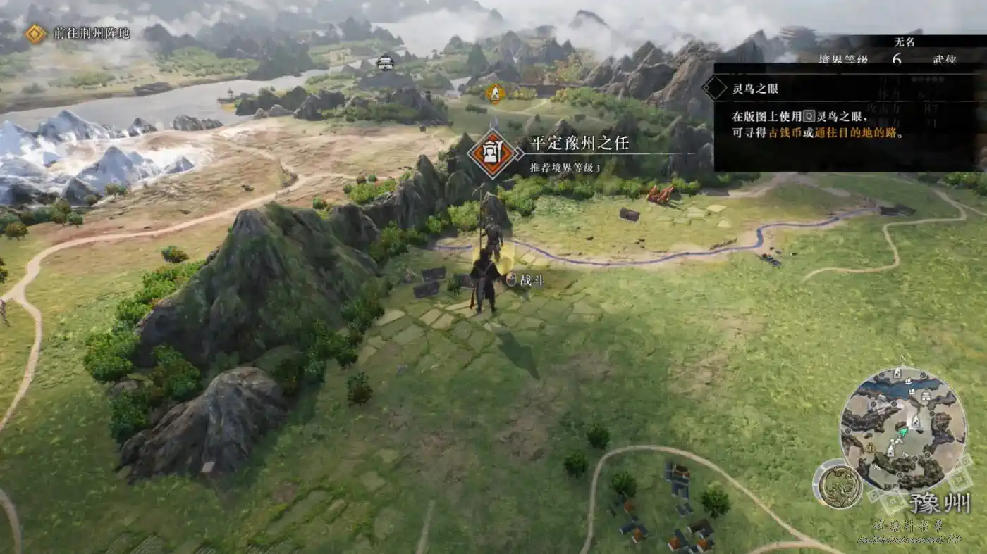 戰術奇效:在高處使用靈鳥之眼會出現藍色的線和戰術圖示提示,使用對應戰術能夠發動戰術奇效。突發戰鬥 豫州的“討伐黃巾軍” 站在香爐的高台能夠發動戰術奇效。
