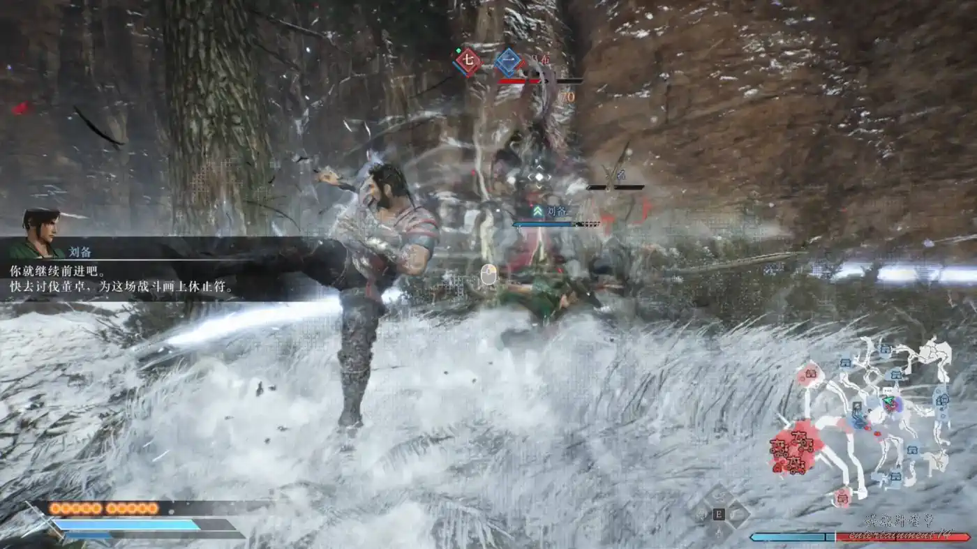 後面呂布就會開始往主帥方向前進,跳下懸崖後就會遇到劉關張,主要戰場就在這裡。