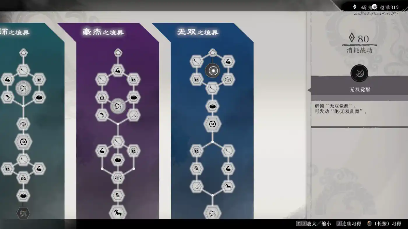 在第四章途中,主角會想起過去的所有記憶後,解鎖技能“無雙覺醒”,花費戰功習得“無雙覺醒”即可。