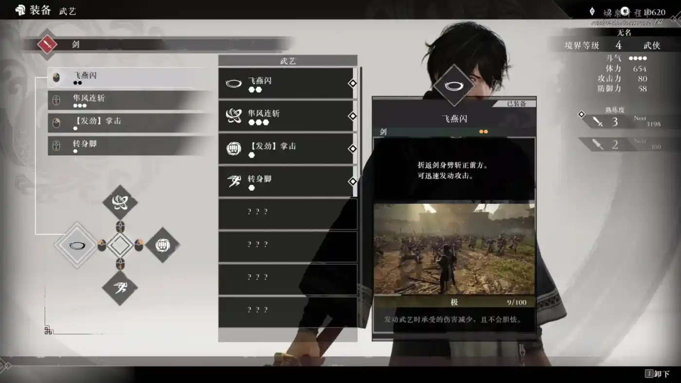 劍的武藝無影劍的威力雖然不夠強,但可以很容易削弱大量外功。