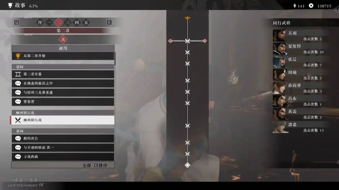 通關後,可以自由選擇同行武將,解鎖最後一個同行武將呂布。
