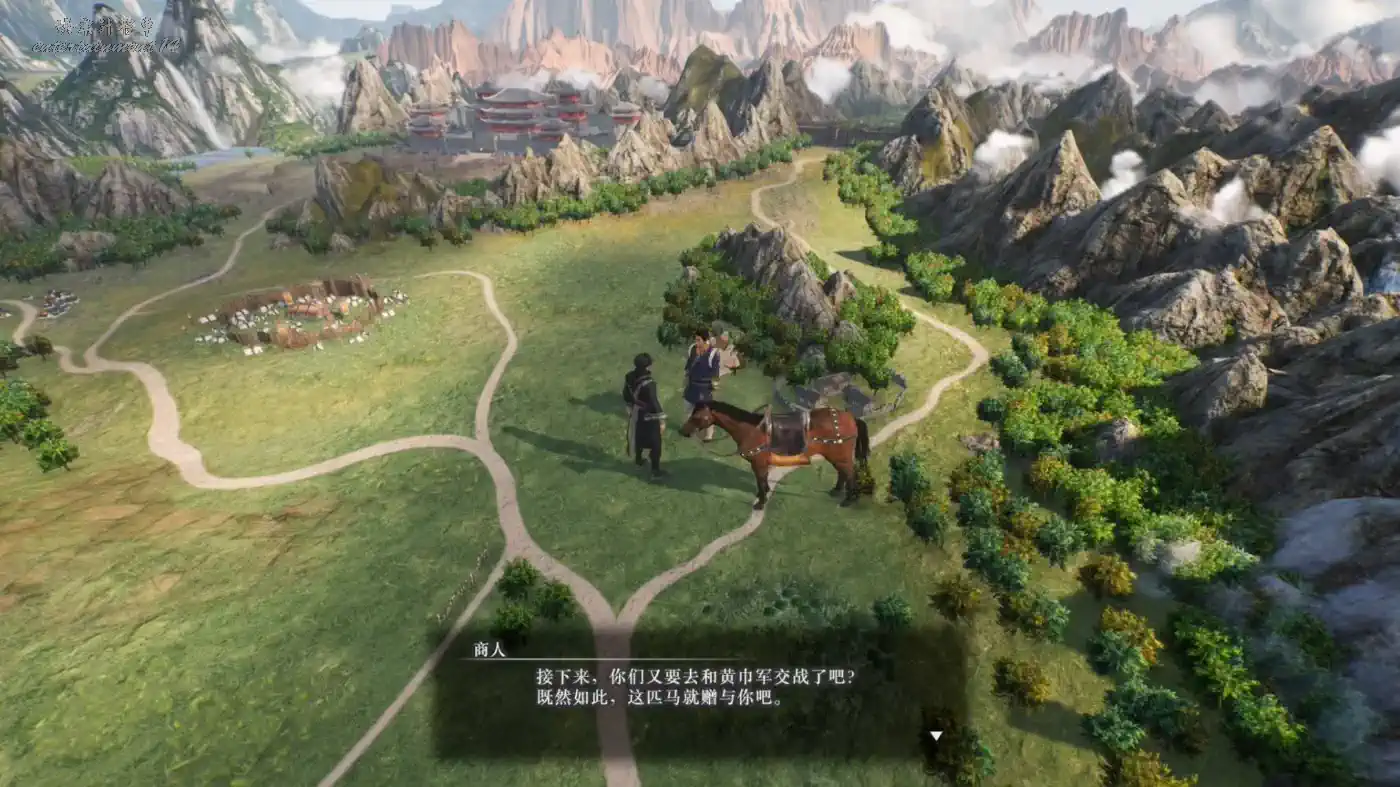 宛城之戰後,在附近就會有一個商人,交談後可以得到第一匹馬。