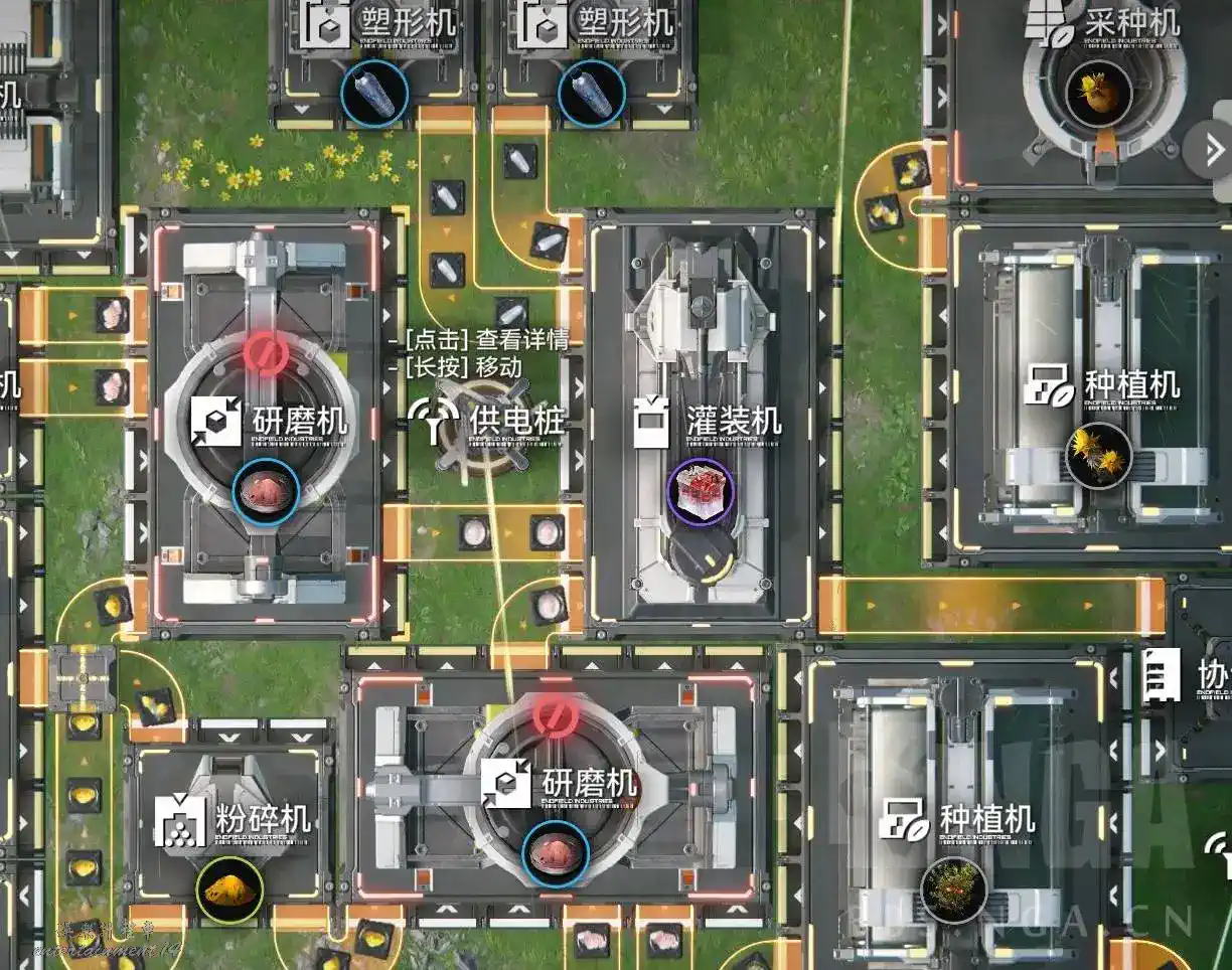 在想要節省空間的時候,考慮多把機器擺在研磨機和種植機組的前面,並調整它們的輸出口。這些機器的輸出口基本都只用一個,遮擋了也無所謂。