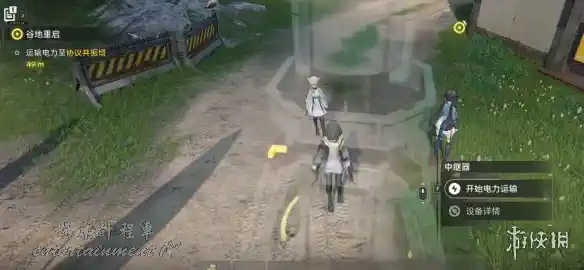第一次接力:從協定核心連接到第一個中繼器→點擊 “完成電力運輸”→靠近第一個中繼器→再次 “開始電力運輸”→連接到第二個中繼器