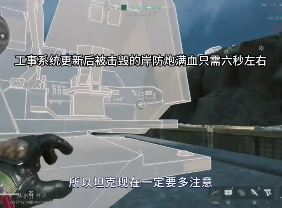 恢復使用:修復後岸防炮滿血,可正常操作開火,無耐久衰減。