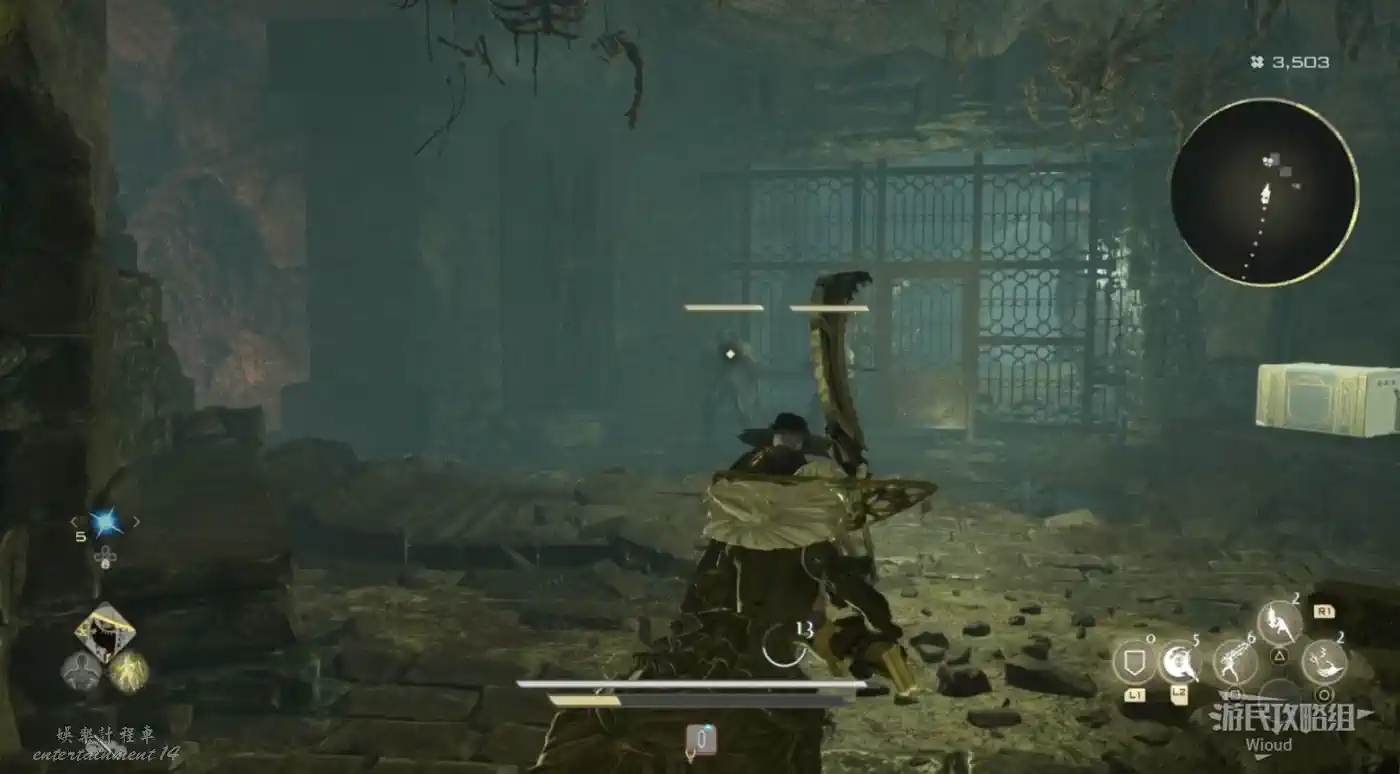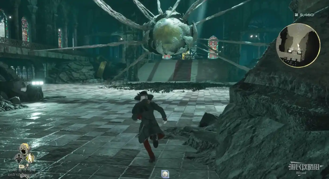 斜坡柱子底部直走到頭右側是出口,沿路走不遠到BOSS房門口,遇到第二個BOSS“輪回的不詳之子”。