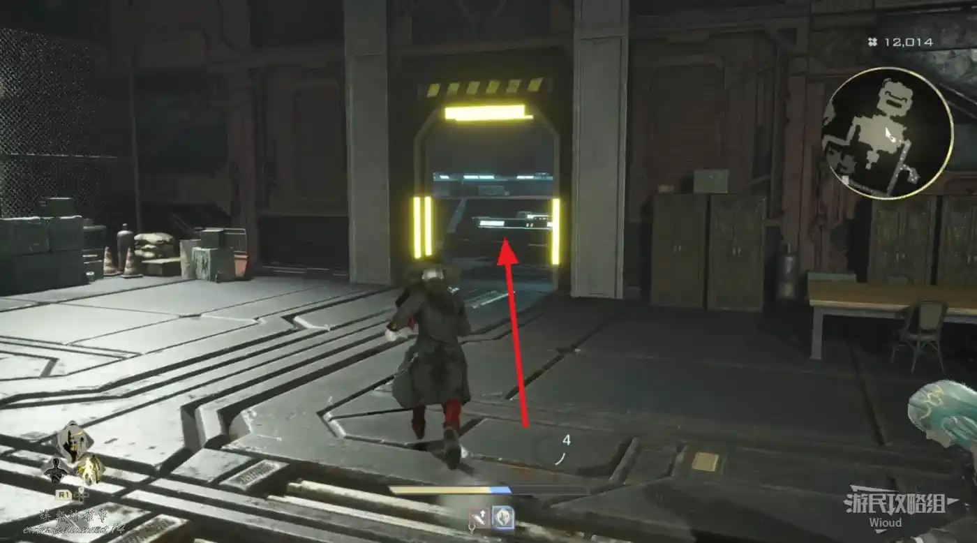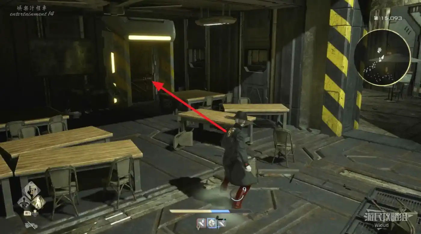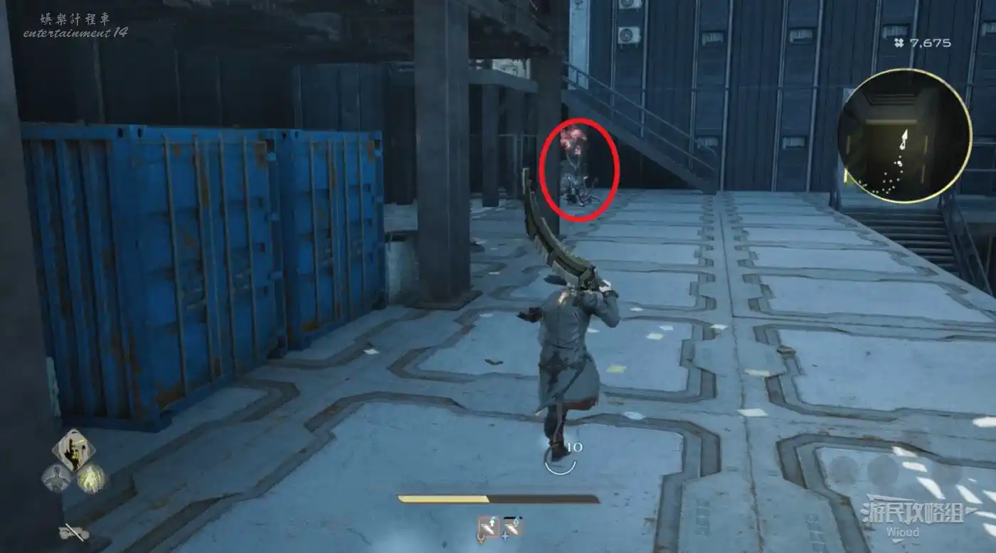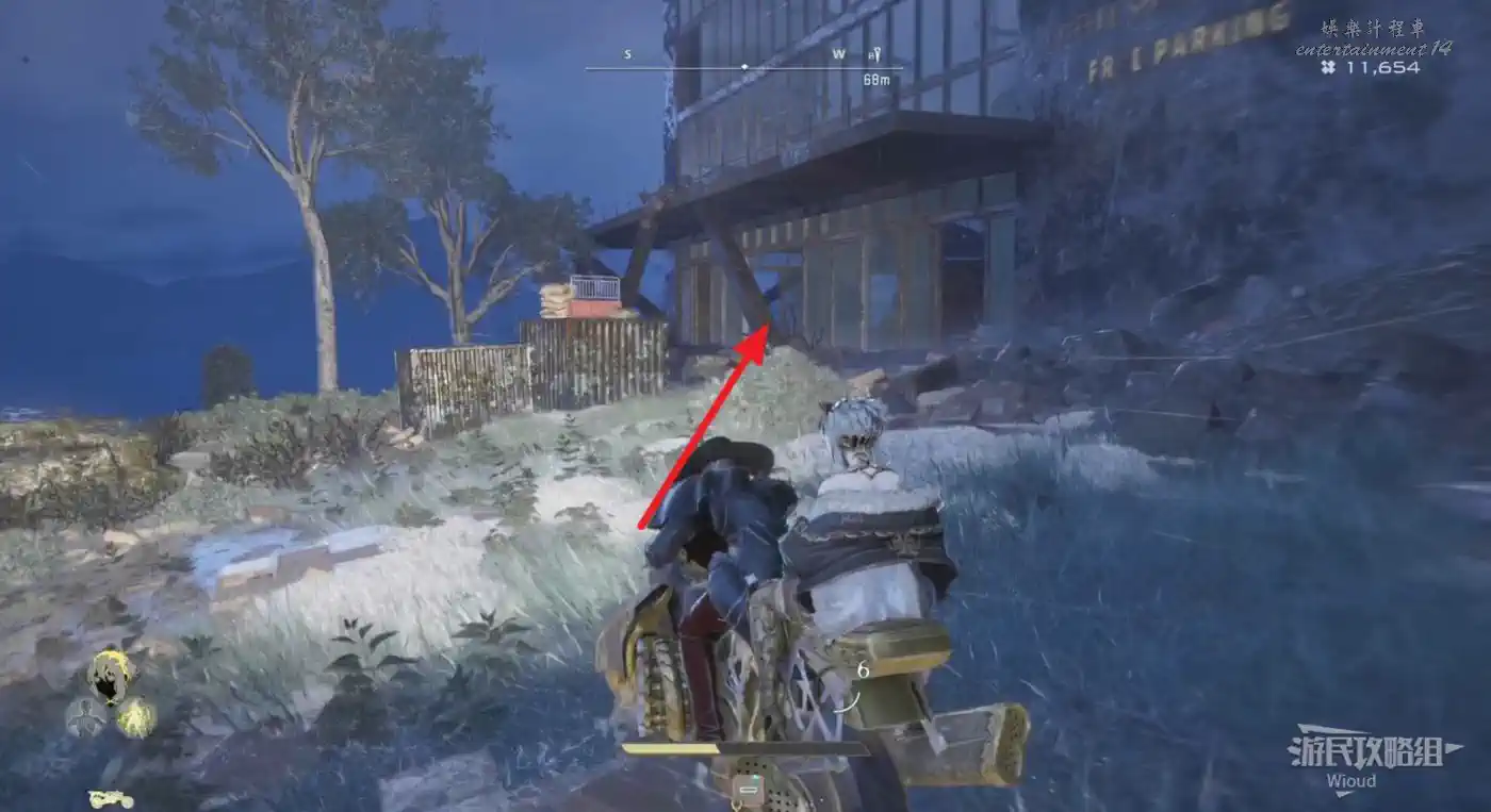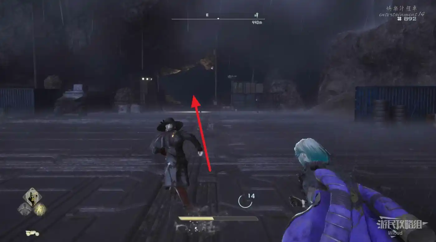 沿著上述的路徑移動到“喬茜的據點”,繞到建築左邊走到頭,乘坐天梯到建築下方。