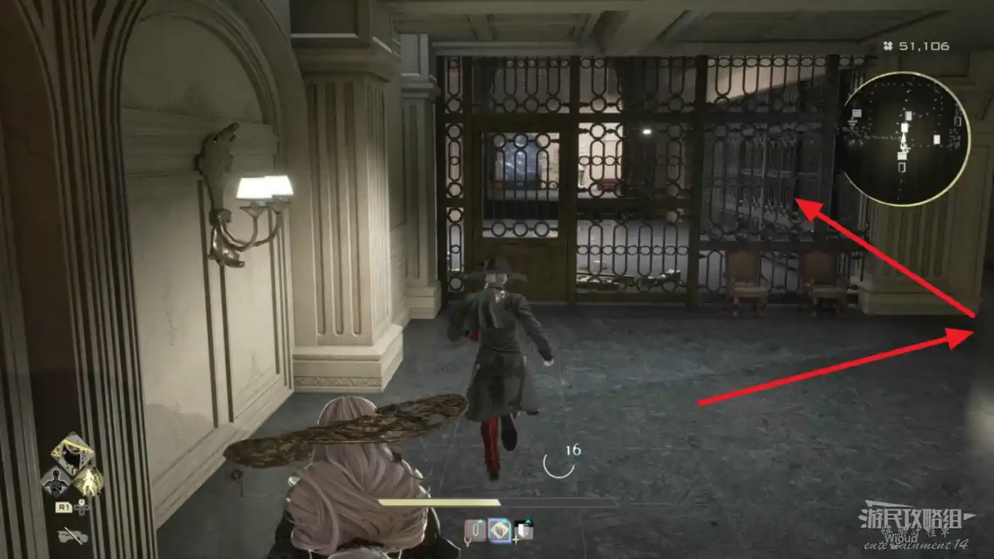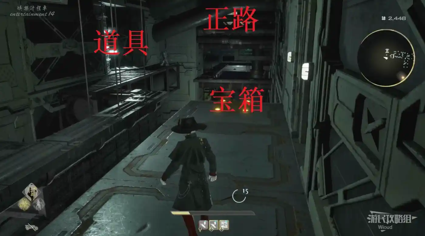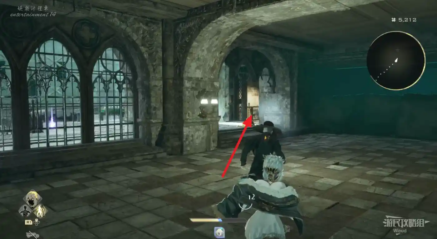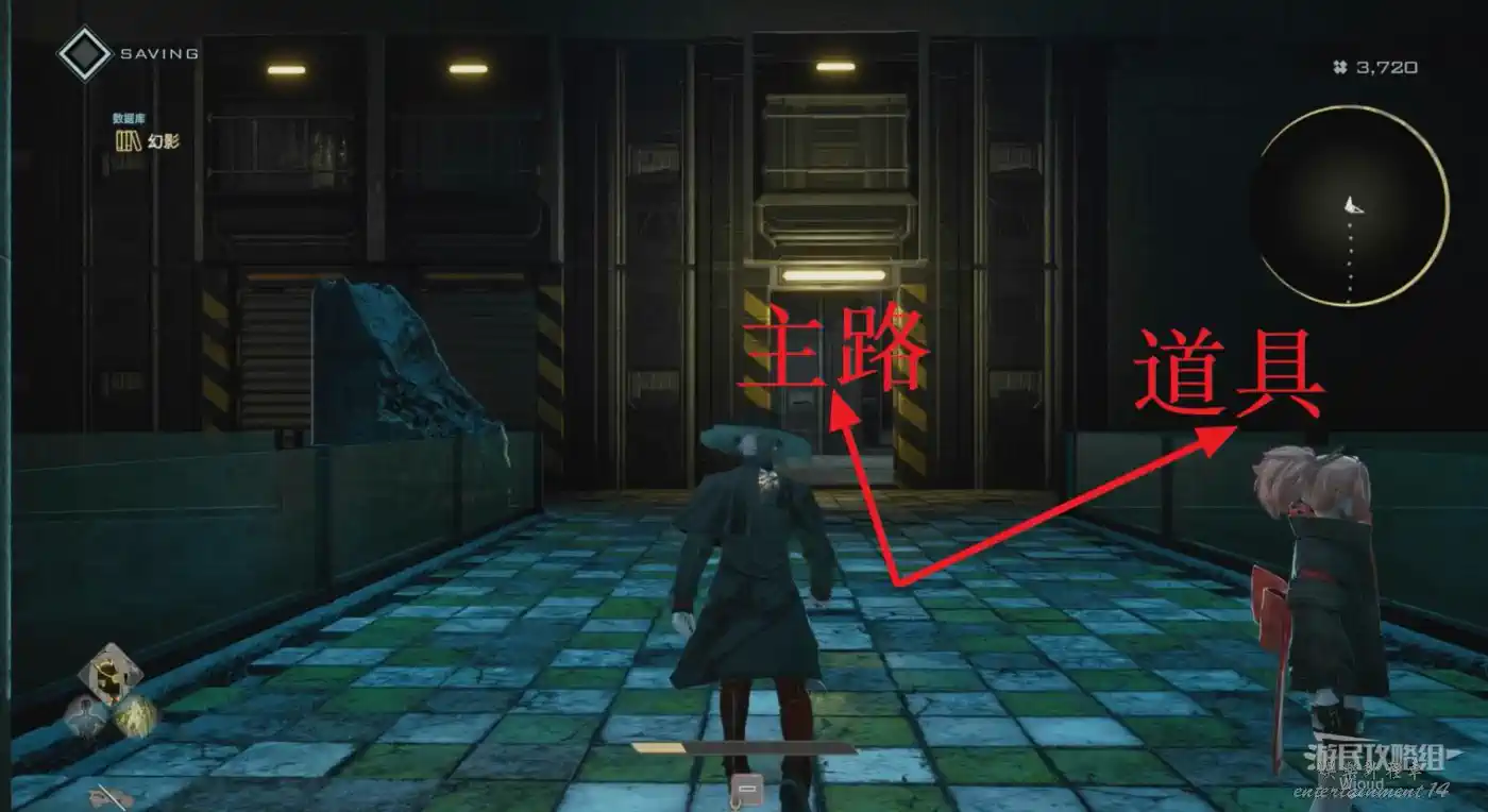 從旁白出口下去可移動到BOSS房門口那個樓梯上方,有個道具。