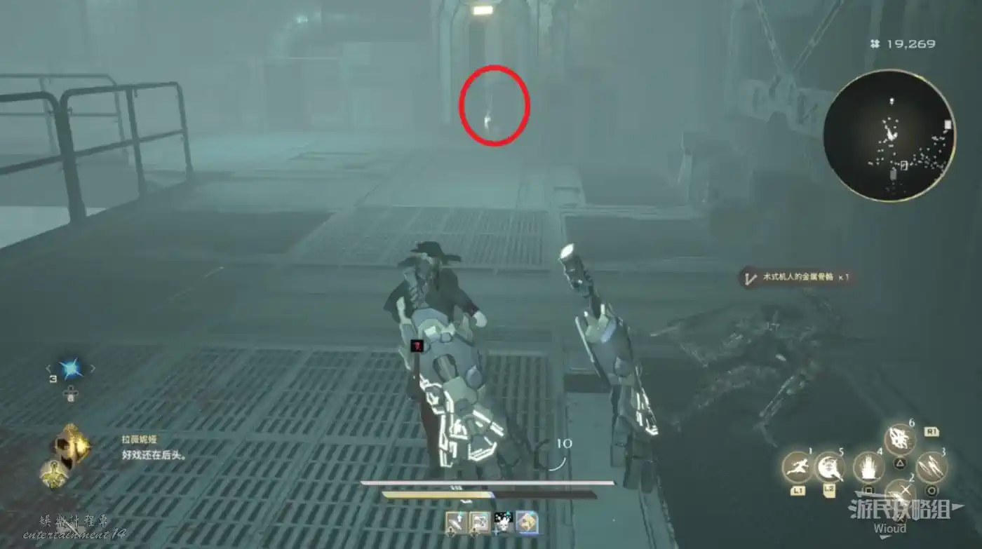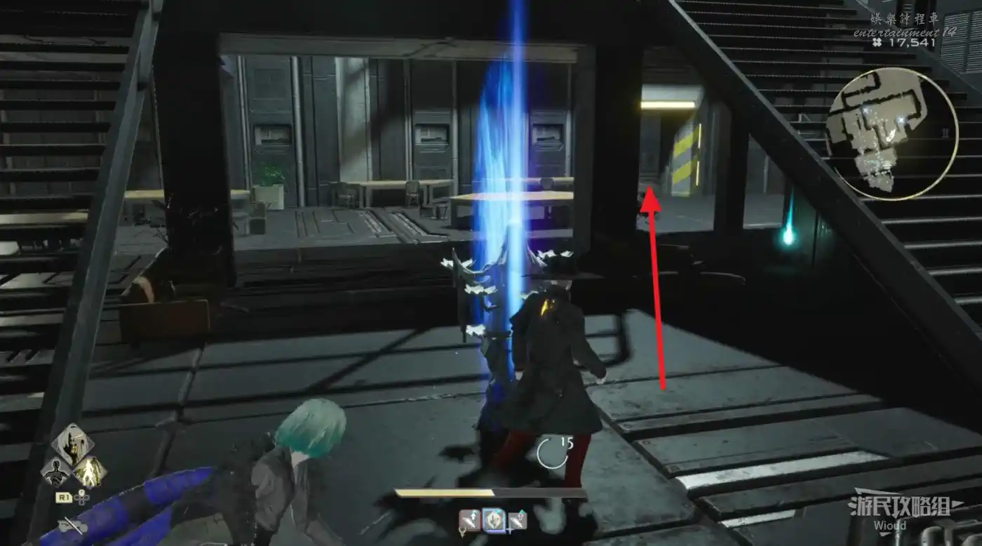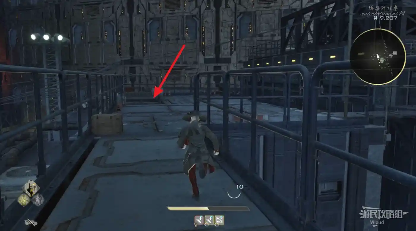 繞著環形建築往左走,找到一座電梯上去觸發劇情。