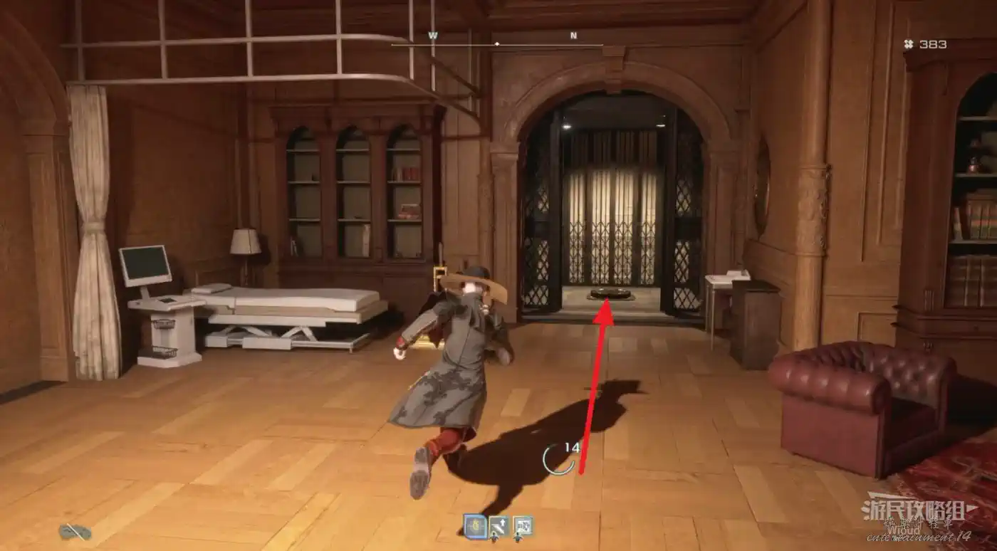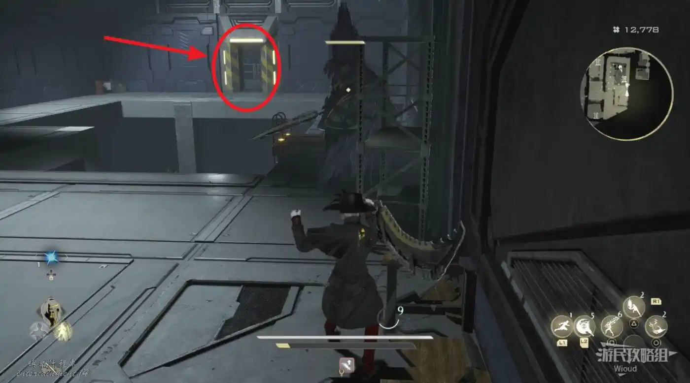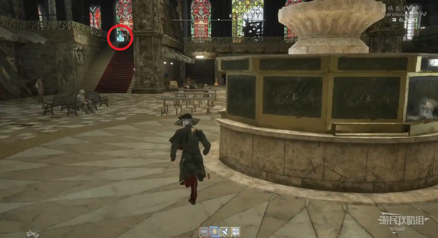 繞著環形建築往左走,找到一座電梯上去觸發劇情。