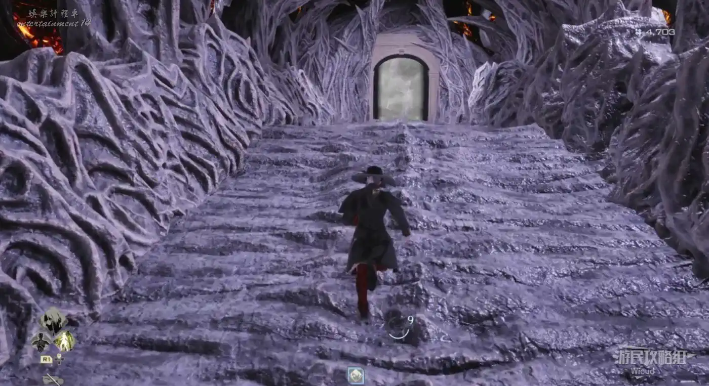 盡頭打“輪回的肉軀·徠爾”,三場戰鬥全部結束,回到篝火處走上坡去打“瓦倫丁”即可通關遊戲。
