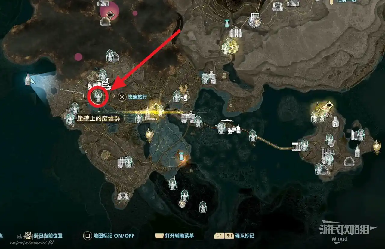 移動到島嶼地圖下方的“遺跡群”。