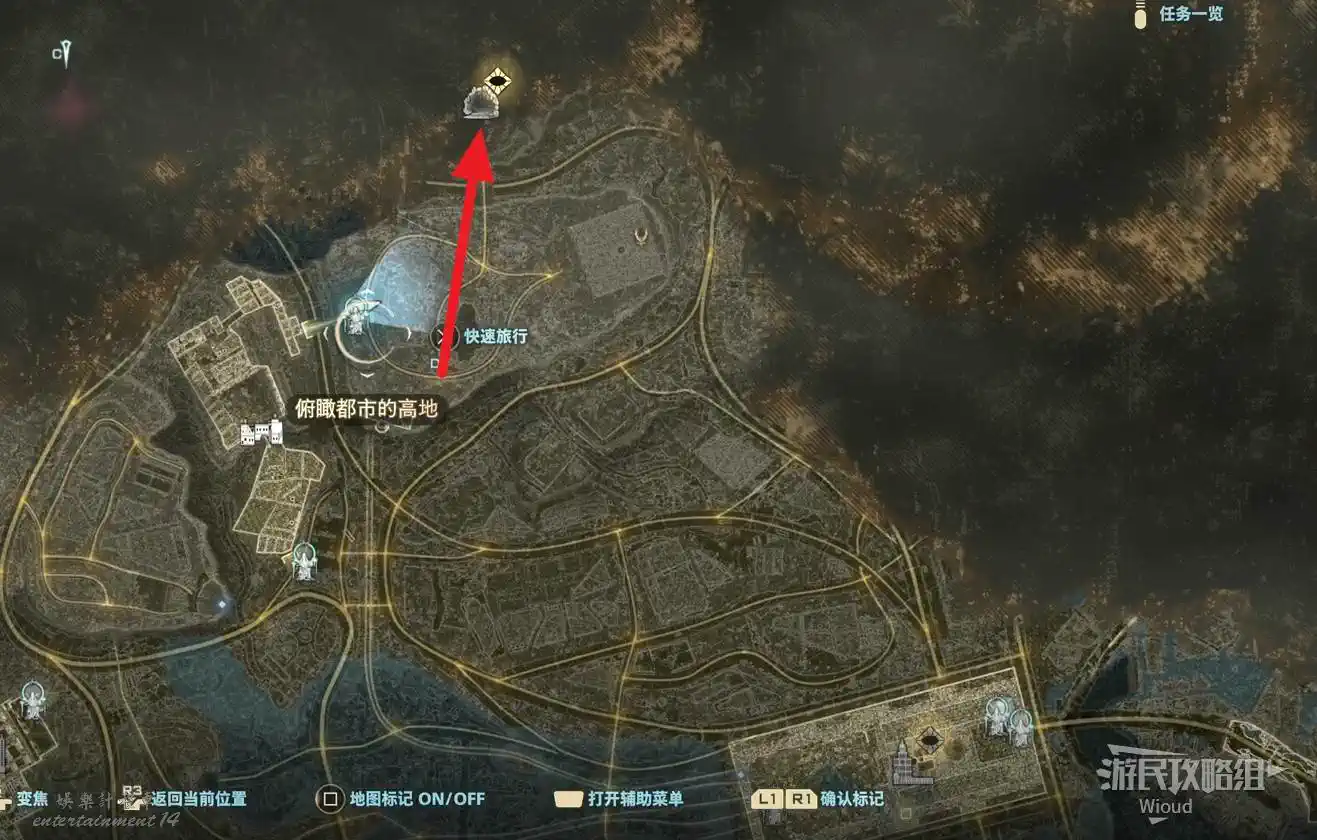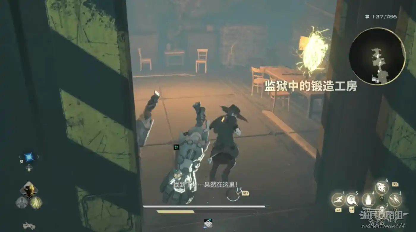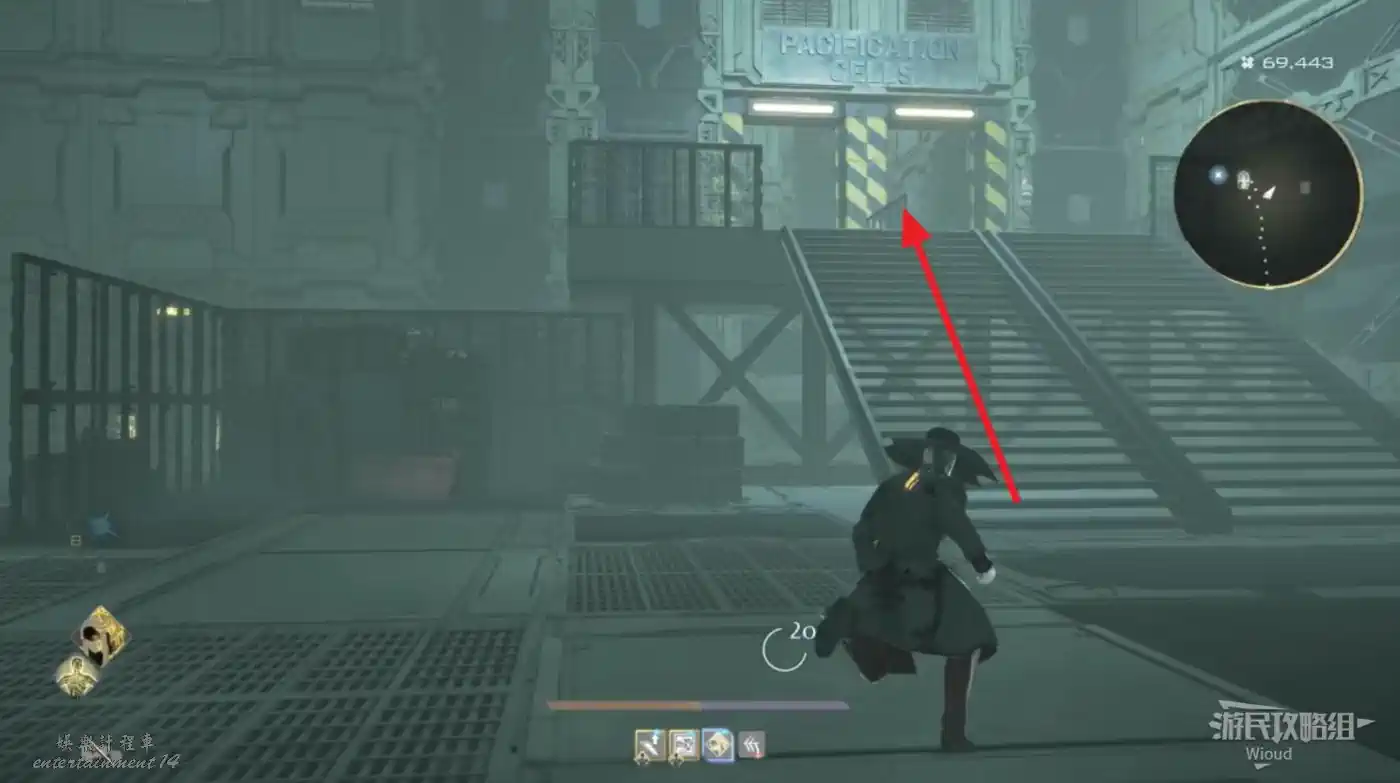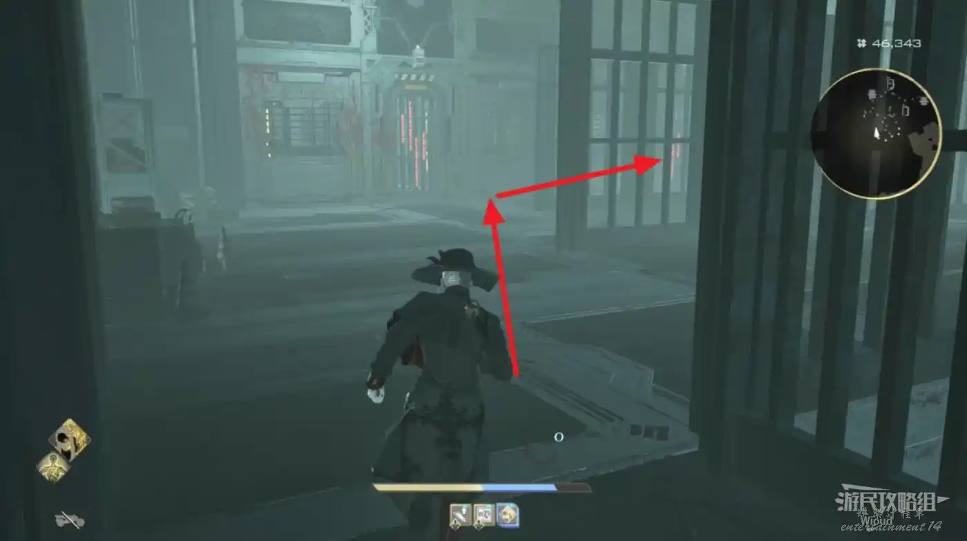 傳送到“監獄島”的篝火“上層收容棟”,沿著紅色路線移動到目標位置。