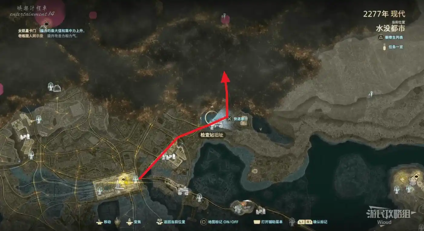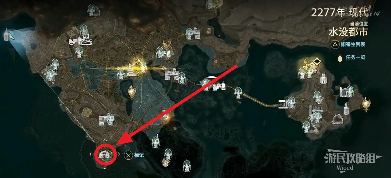 移動到水沒都市的“西側關口舊址”,沿路往裡走到BOSS房區域。