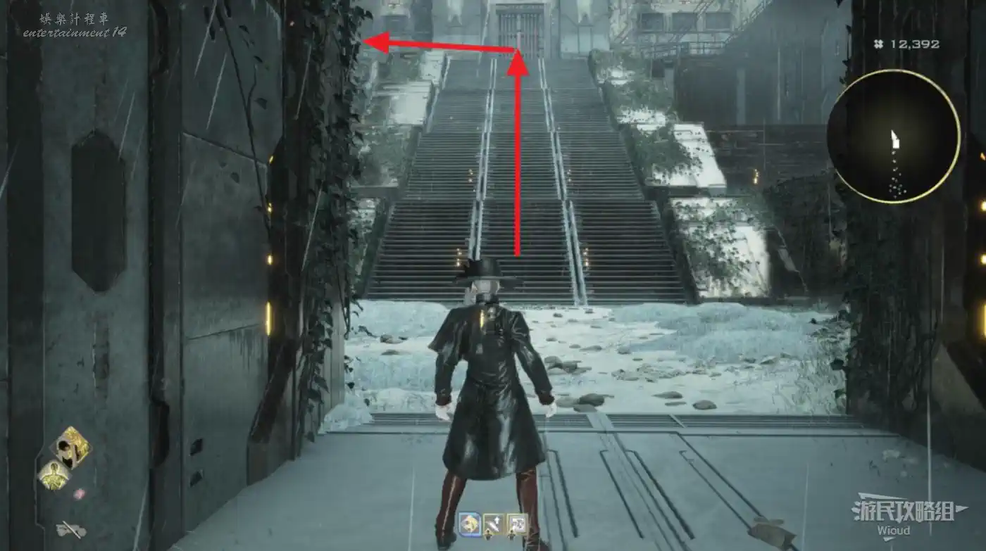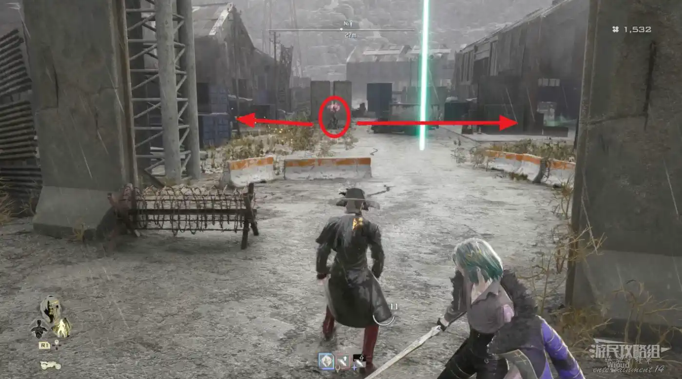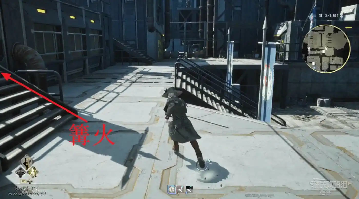 先無視第一個入口,繼續沿路走過一個黃黑封條的小門,穿過一個鐵橋能看到對面有個高塔,從高塔的另一個樓梯口下去就能找到入口2。