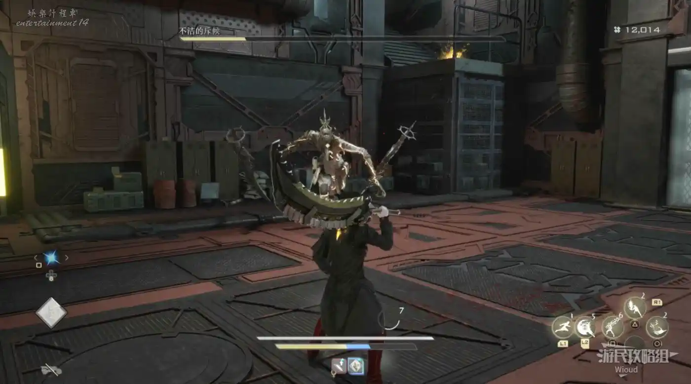 本區域的BOSS“異形生還者貝倫特”使用身後的數把浮空刀當做武器。