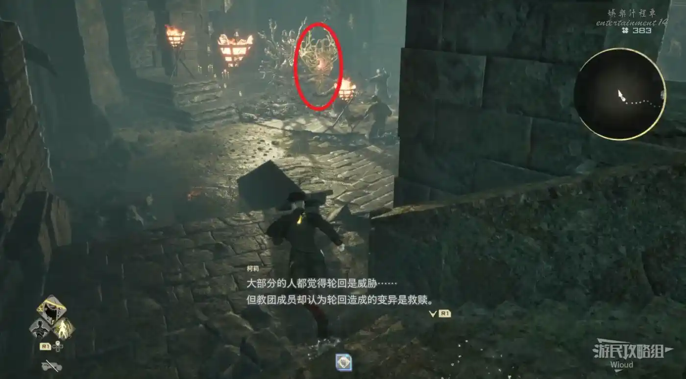 啟動對面的復活石碑,進入旁邊霧門和“輪回的肉軀·喬茜”戰鬥,敵人和“失明的英雄喬茜”完全相同,只是重新再打一遍,後面兩個BOSS同理。