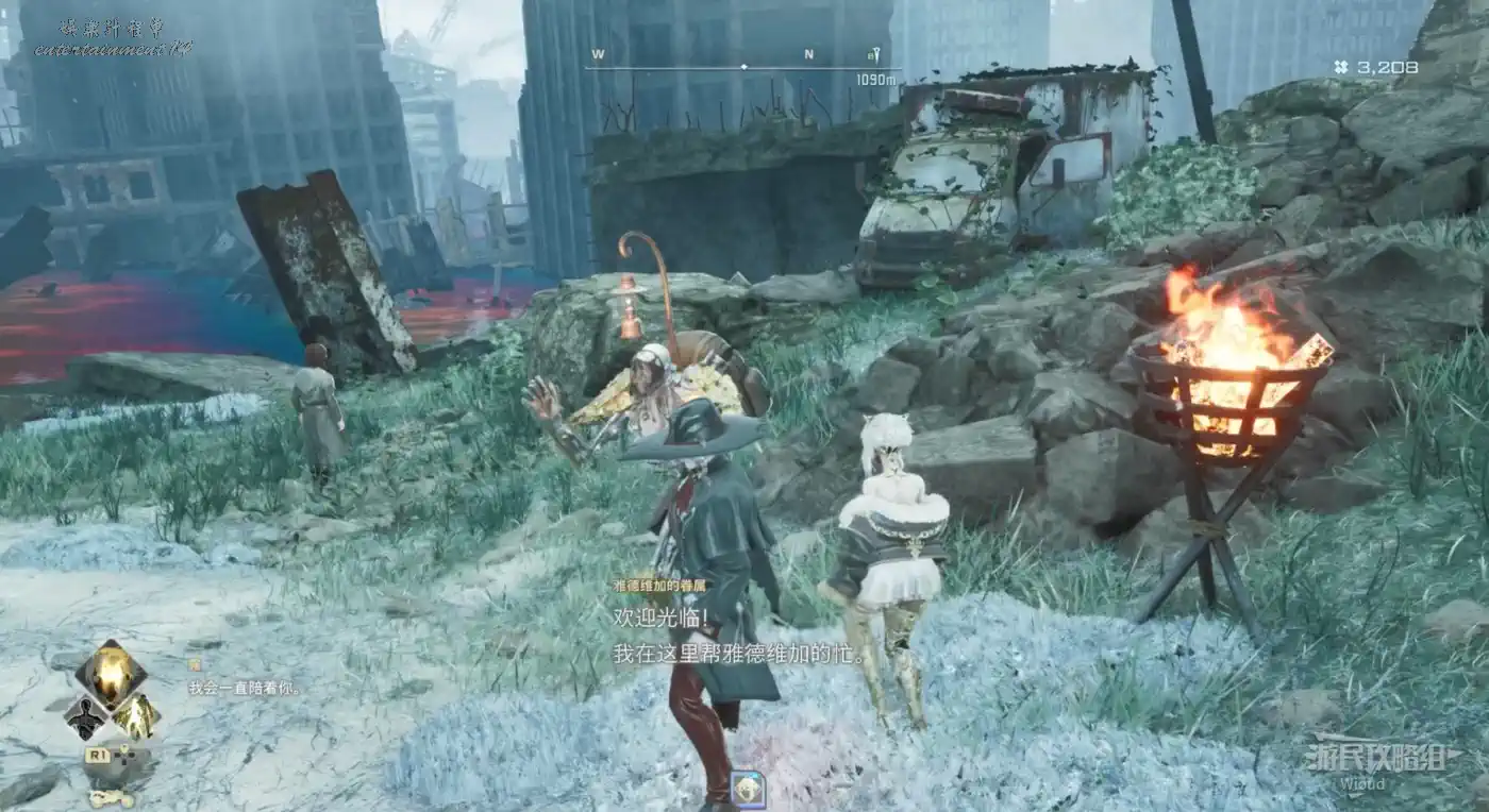 難民村篝火旁會遇到“雅德維加的眷屬”,屬於據點外的綜合商店,包含了商店、強化等一系列功能。