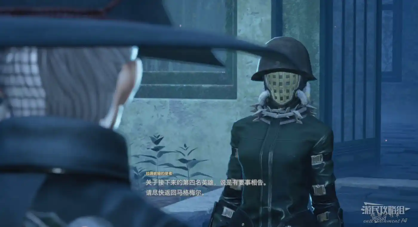 到達位置擊敗篝火旁的“血努商人”,隨後去“馬格梅爾”找“徠爾”對話,得知需要收集五個面具。
