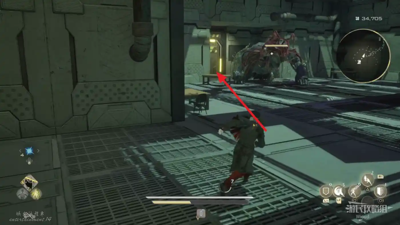 乘坐BOSS房後面的電梯來到封印喬茜的繭處觸發劇情,和出現的緣互動穿越到過去。