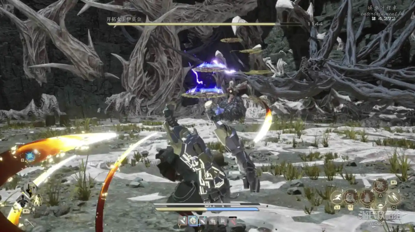 全程使用閃電鏈來攻擊玩家,唯一需要注意的是它那些範圍攻擊,只要站在它面前就沒事,很好躲。
