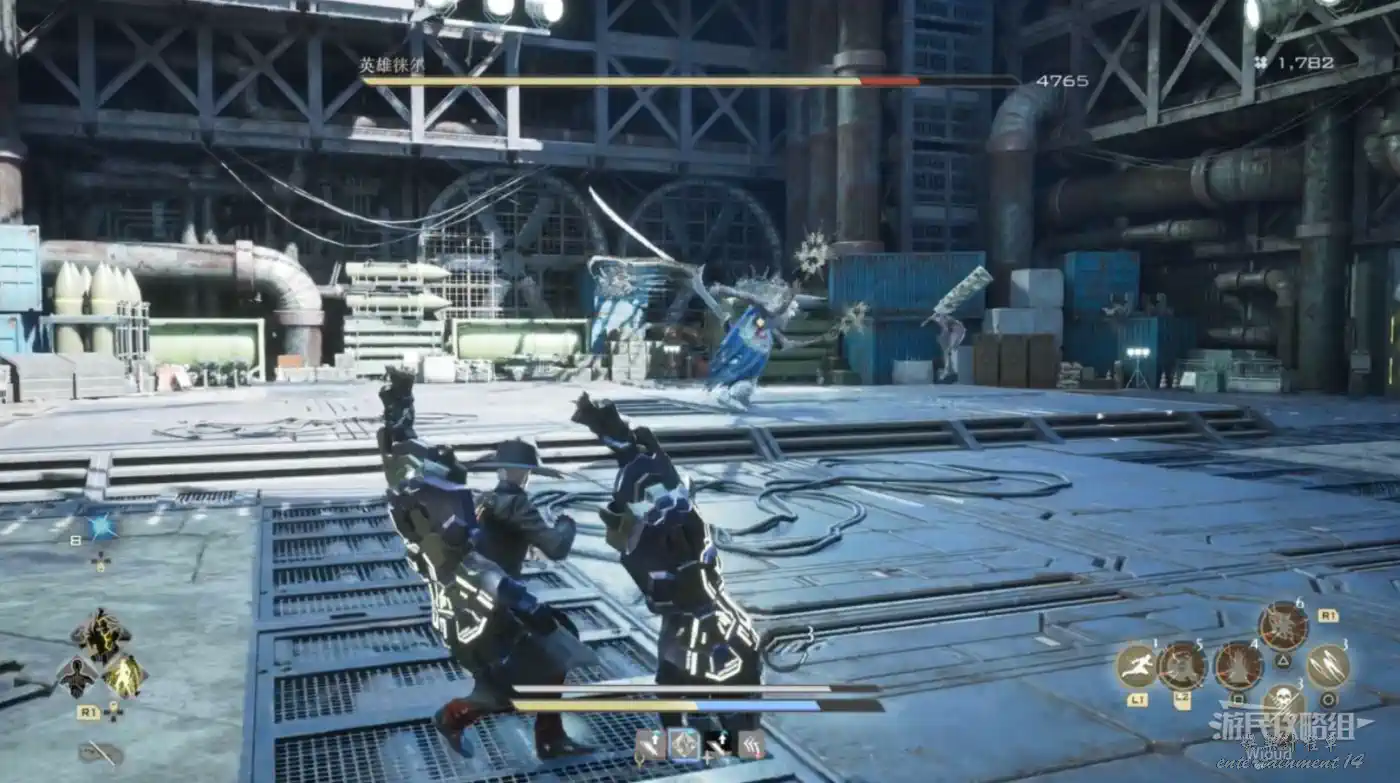 簡單的打法就是讓搭檔吸引火力,我們在它招式後搖期間從背後攻擊,另外本作的盾牌完全免疫物理攻擊,您可以持盾正面抗下敵人的攻擊,依然是抓取後搖打出傷害。