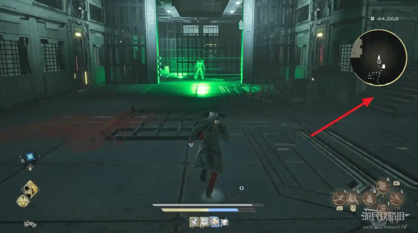 坐電梯下去啟動第一個篝火,走出隧道沿路連續背刺兩個敵人,走到一個稍大的房間,其右側紅圈所示處有個寶箱,打開獲得心籠“收割者”。