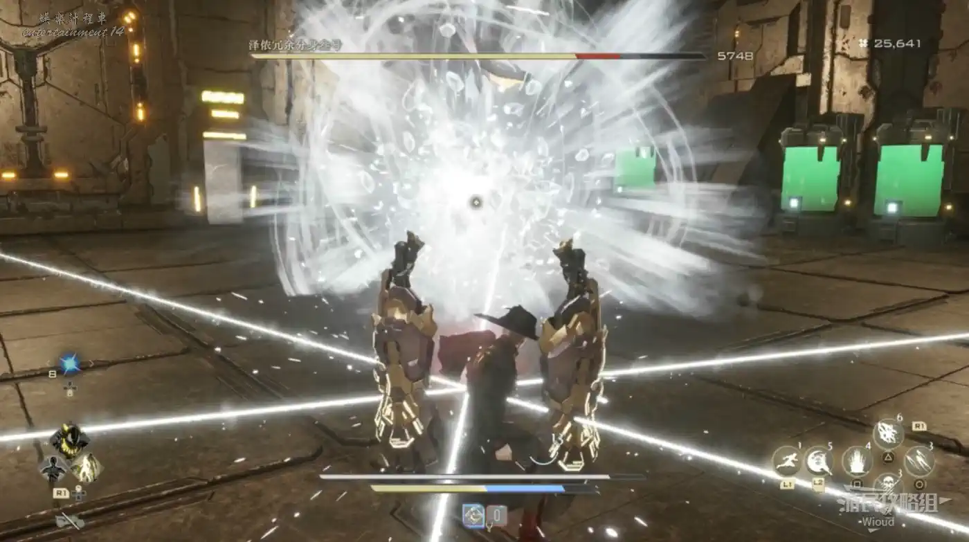 敵人的全圖攻擊有兩個階段,先四處移動躲避飛來的能量球,這時儘量站在敵人側面附近。