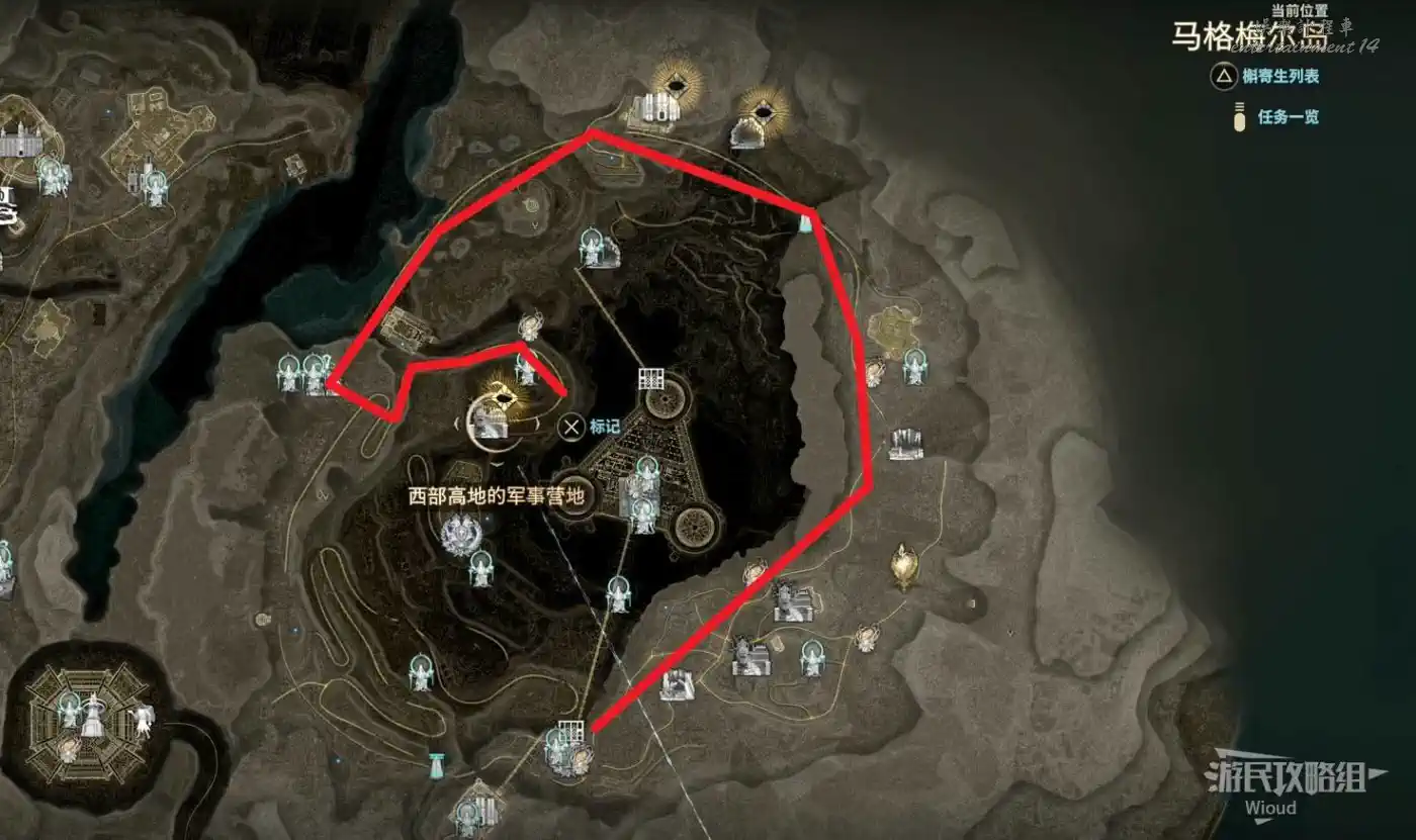 位置在酸之穀“西部高地的軍事基地”,如果沒來過周圍需要沿著下圖紅色路線走一圈。