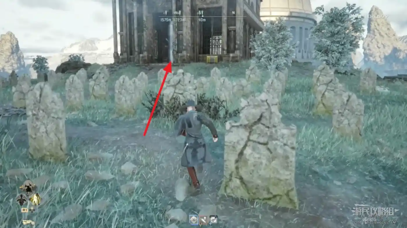 大門往裡直走,左側柱子上有個寶箱,打開獲得傳承術式“執政者的打弓”。