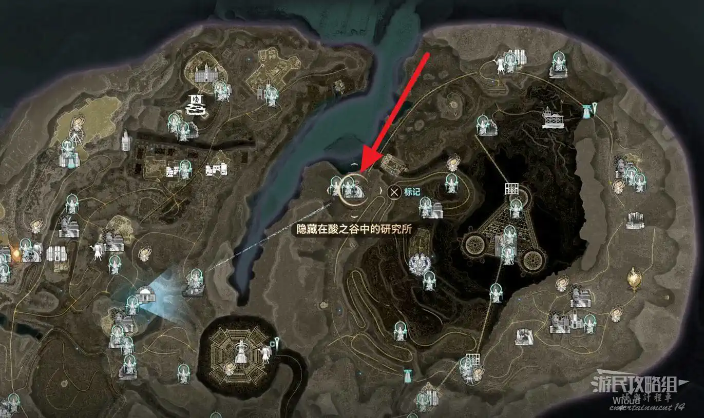 可以從“礦工休息區”或者“隱藏在酸之穀中的研究所”出發,走到“臨近山谷的藥池”處。