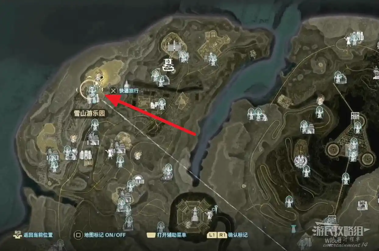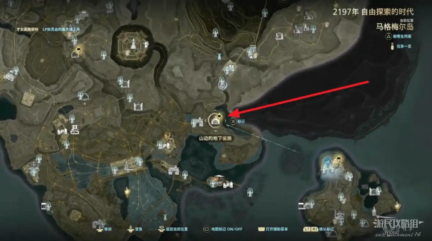 拿到所有香辛料去“馬格梅爾”找喬茜對話,打開地圖傳送到“檢查站舊址”往右側“山邊的地下設施”走。