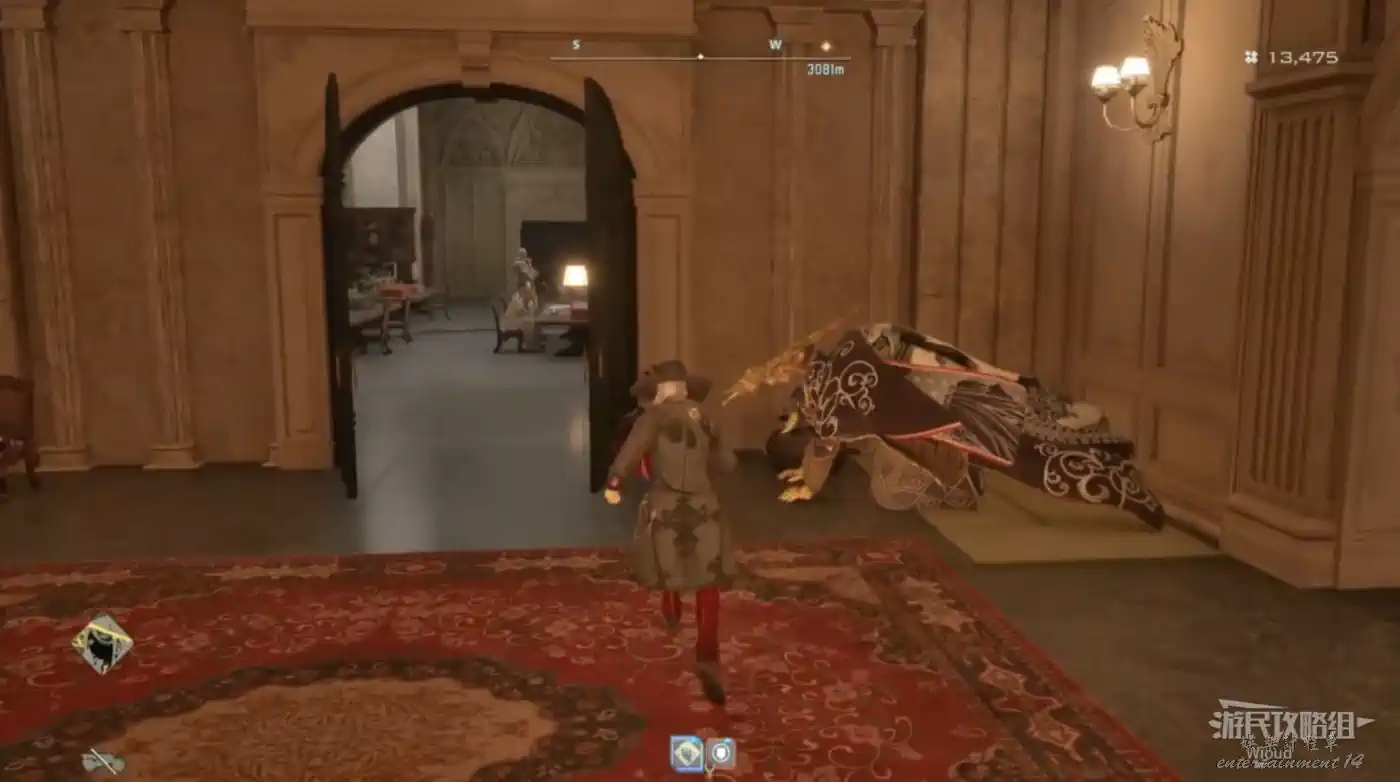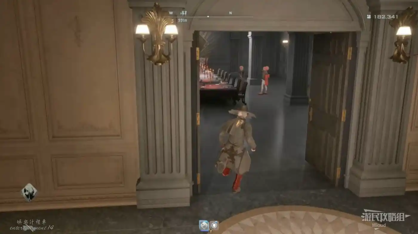 進入右邊大門走到一個全是柱子的房間,先直走到盡頭右邊有個金色道具。