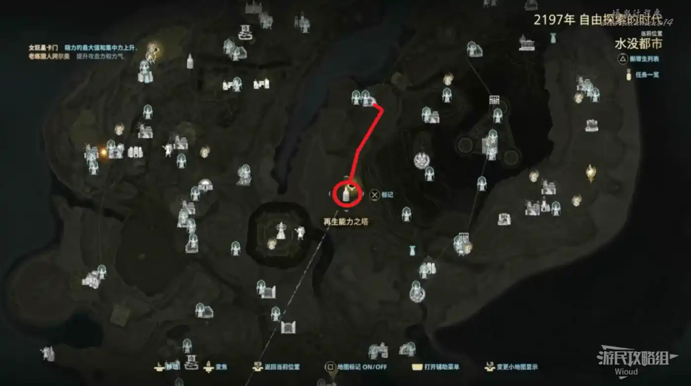 傳送到“隱藏在酸之穀中的研究所”沿著紅色路線移動到指定處的“再生能力之塔”,靠近即可觸發劇情。